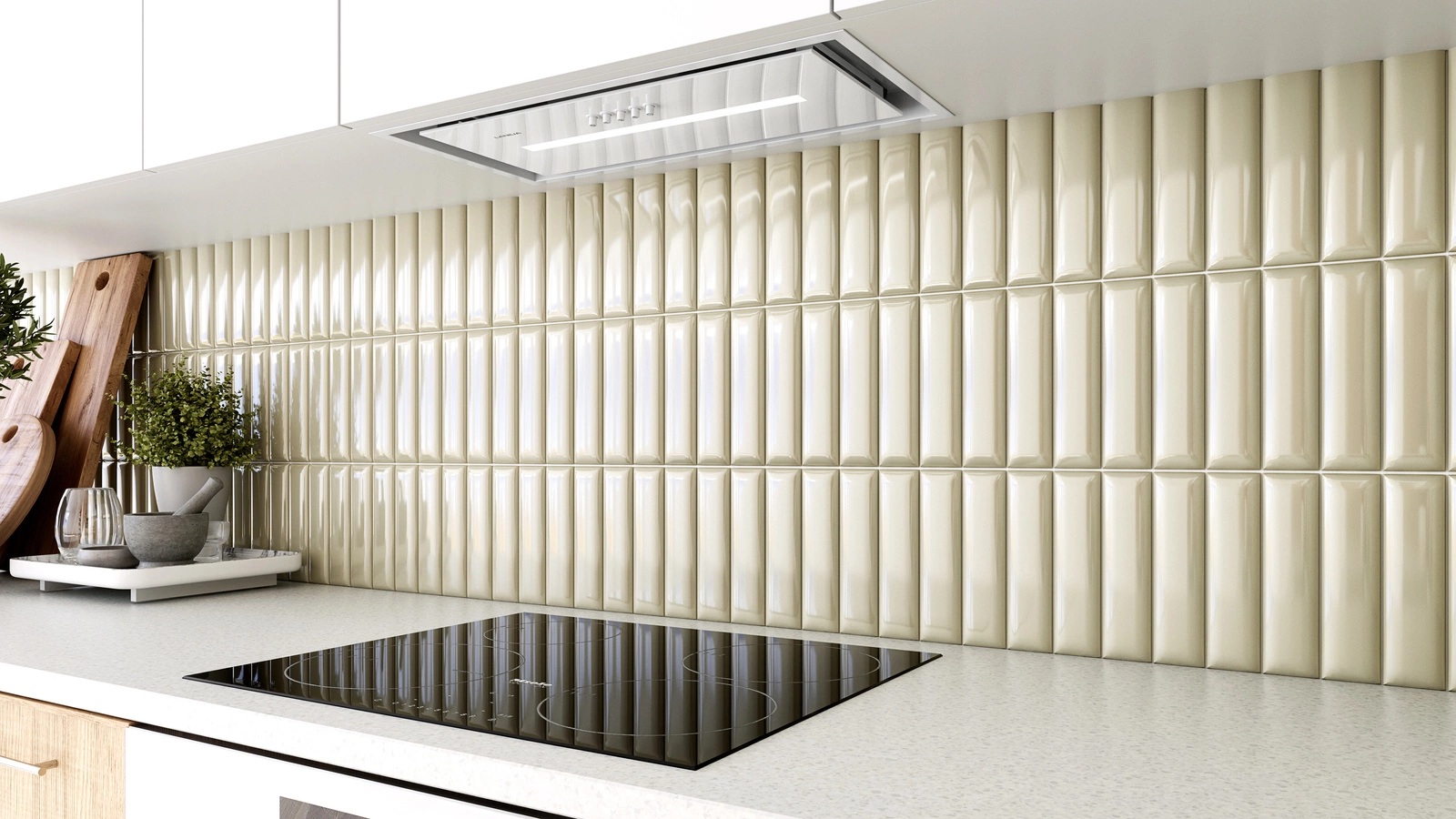 - Kompaktowy korpus o wysokości tylko 14,2 cm. pozwala na łatwe ukrycie okapu w kuchennej zabudowie i oszczędność miejsca.