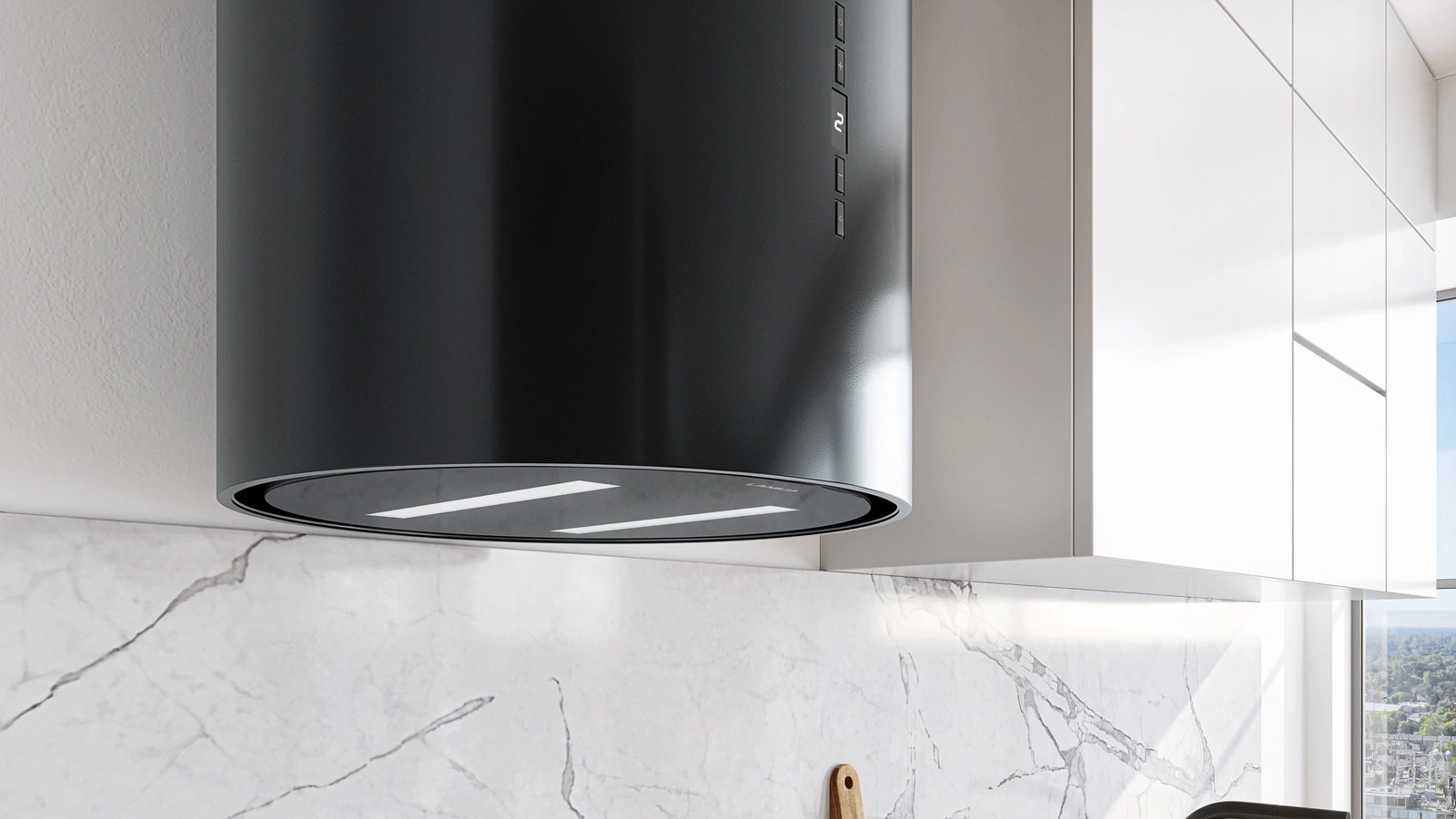 Prawdziwa perełka wśród przyściennych okrągłych okapów kuchennych – Wereniso 39.1 Black zachwyca oryginalną stylistyką i ponadczasowością użytych materiałów. Prezentowany przez nas model to połączenie nowoczesnej technologii, wysokiej funkcjonalności i wyjątkowego designu.