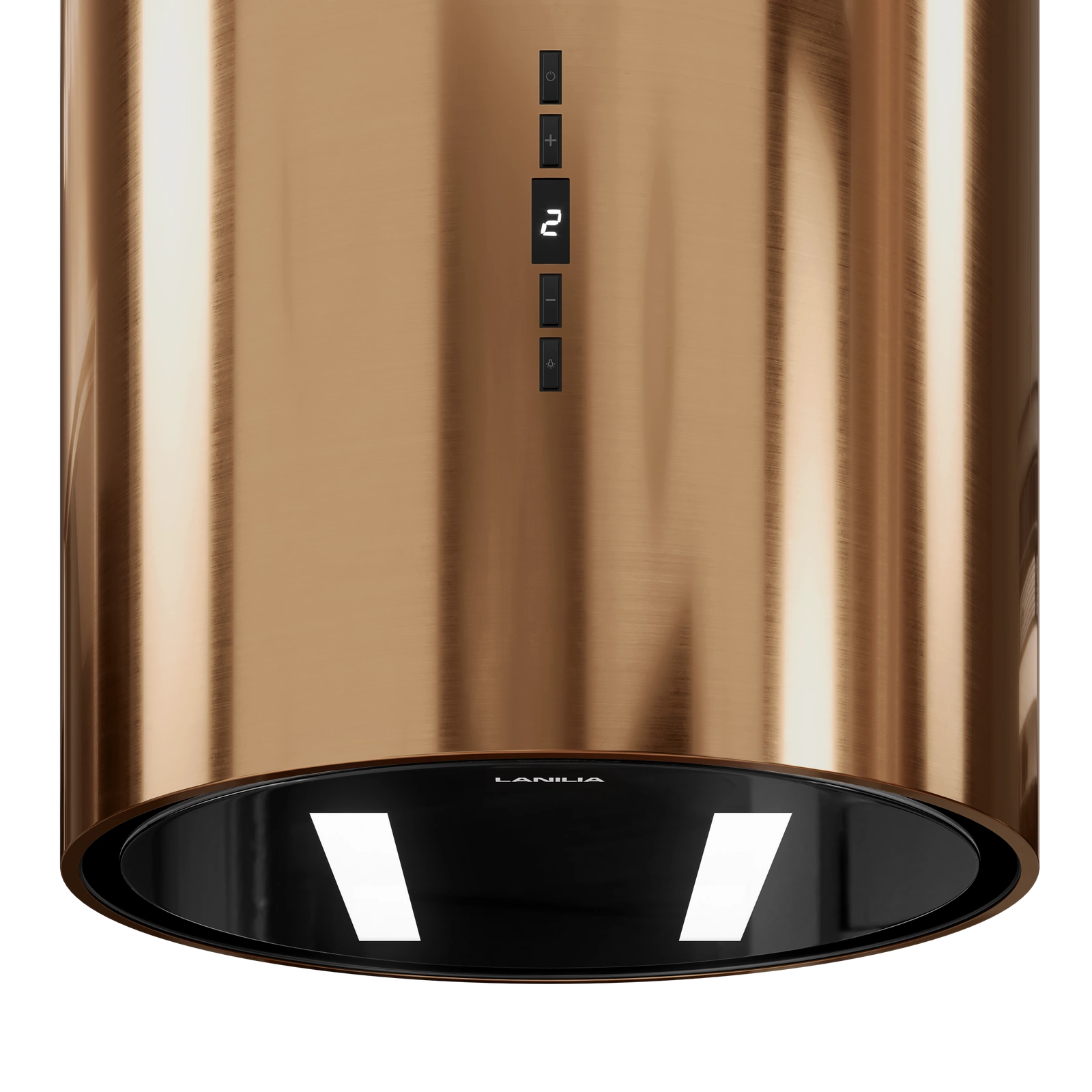 Okap Calmio Carmel Gold wykończony jest w eleganckim złotym odcieniu. Ulokowany nad wyspą kuchenną dopełni aranżację. Sprawdzi się znakomicie w nowoczesnych wnętrzach inspirowanych najnowszymi trendami, jak również w miejscach, gdzie dominuje klasyczna elegancja.