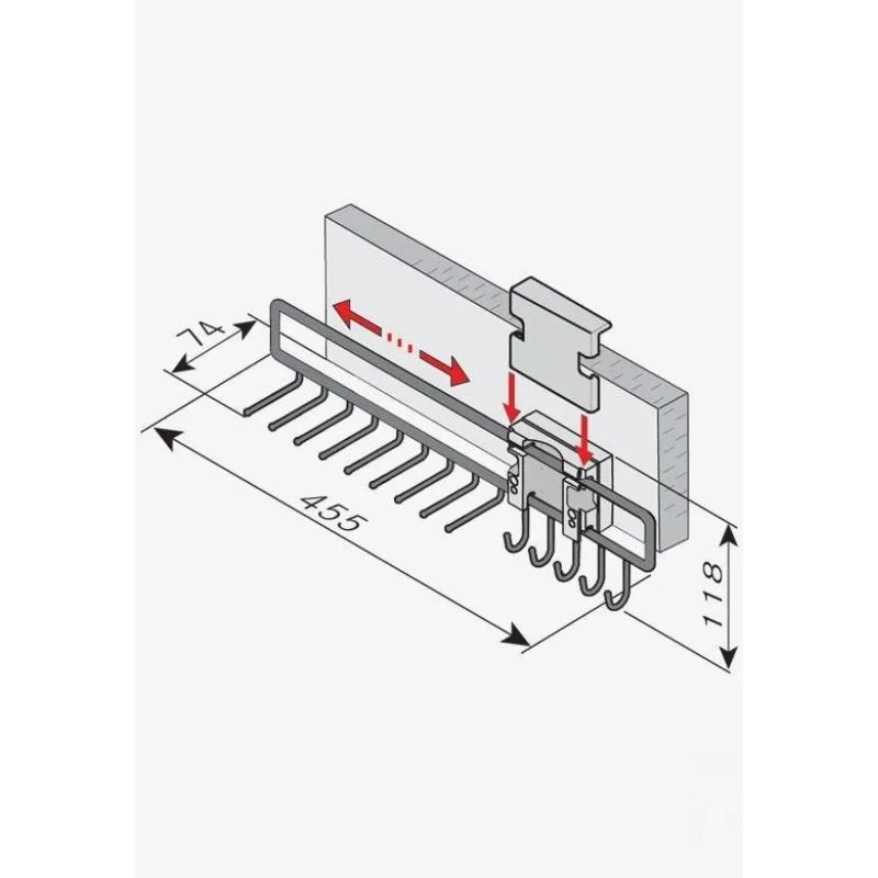 • Prosty montaż i wszechstronność - Montaż wieszaka jest niezwykle prosty. Możesz go przymocować zarówno do prawego, jak i lewego boku swojej szafy, garderoby lub innego wybranej przestrzeni. Warto również zaznaczyć, że wieszak do pełnego wysunięcia wymaga jedynie dodatkowych 480 mm wolnej przestrzeni, co sprawia, że jest to rozwiązanie dostosowane do różnych potrzeb.