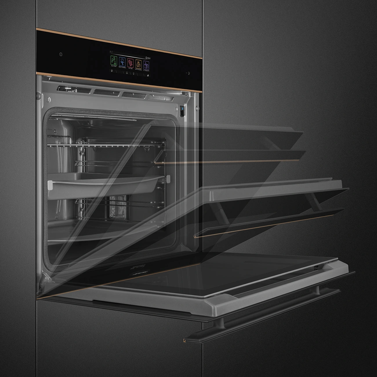 Estetyka i ergonomia to kolejne atuty piekarnika Smeg SOP6606WS2PNR. Nowoczesna obudowa ze stali nierdzewnej odporna na odciski palców sprawia, że sprzęt zawsze wygląda schludnie i stylowo. Intuicyjny panel dotykowy oraz czytelny wyświetlacz LCD umożliwiają łatwą kontrolę ustawień, a automatyczne programy pieczenia pozwalają na jeszcze prostszą obsługę. Piekarnik wyposażono również w wewnętrzne oświetlenie LED, które ułatwia kontrolę procesu pieczenia bez konieczności otwierania drzwi.