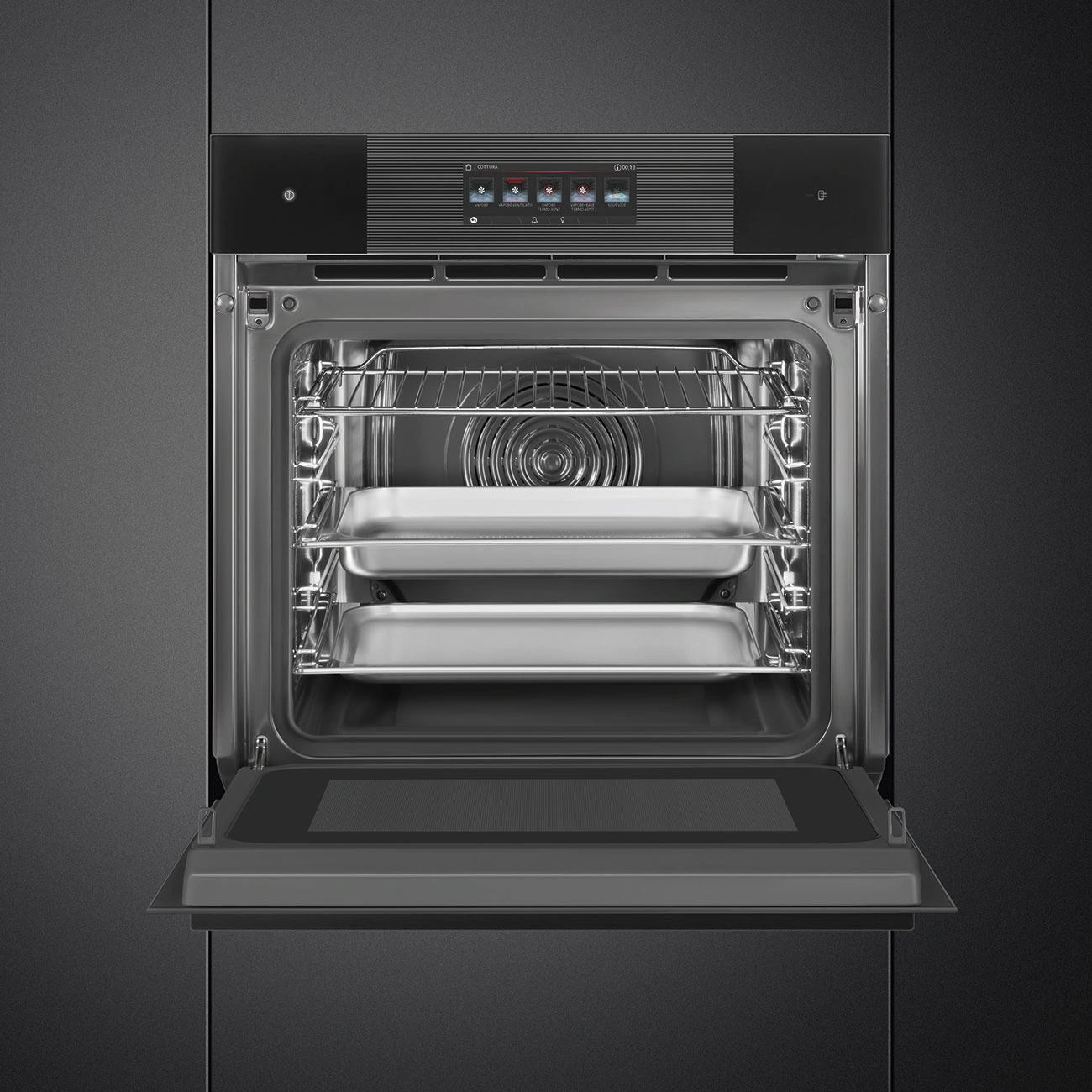 Piekarnik Elektryczny z Funkcją Mikrofali i Pary SO6106WAPB3 - Smeg to nowoczesne urządzenie, które łączy w sobie zaawansowaną technologię i elegancki design, typowy dla włoskiej marki Smeg. Ten wielofunkcyjny piekarnik elektryczny został zaprojektowany, by sprostać oczekiwaniom nawet najbardziej wymagających kucharzy, oferując jednocześnie wygodę oraz efektywność gotowania na najwyższym poziomie.
