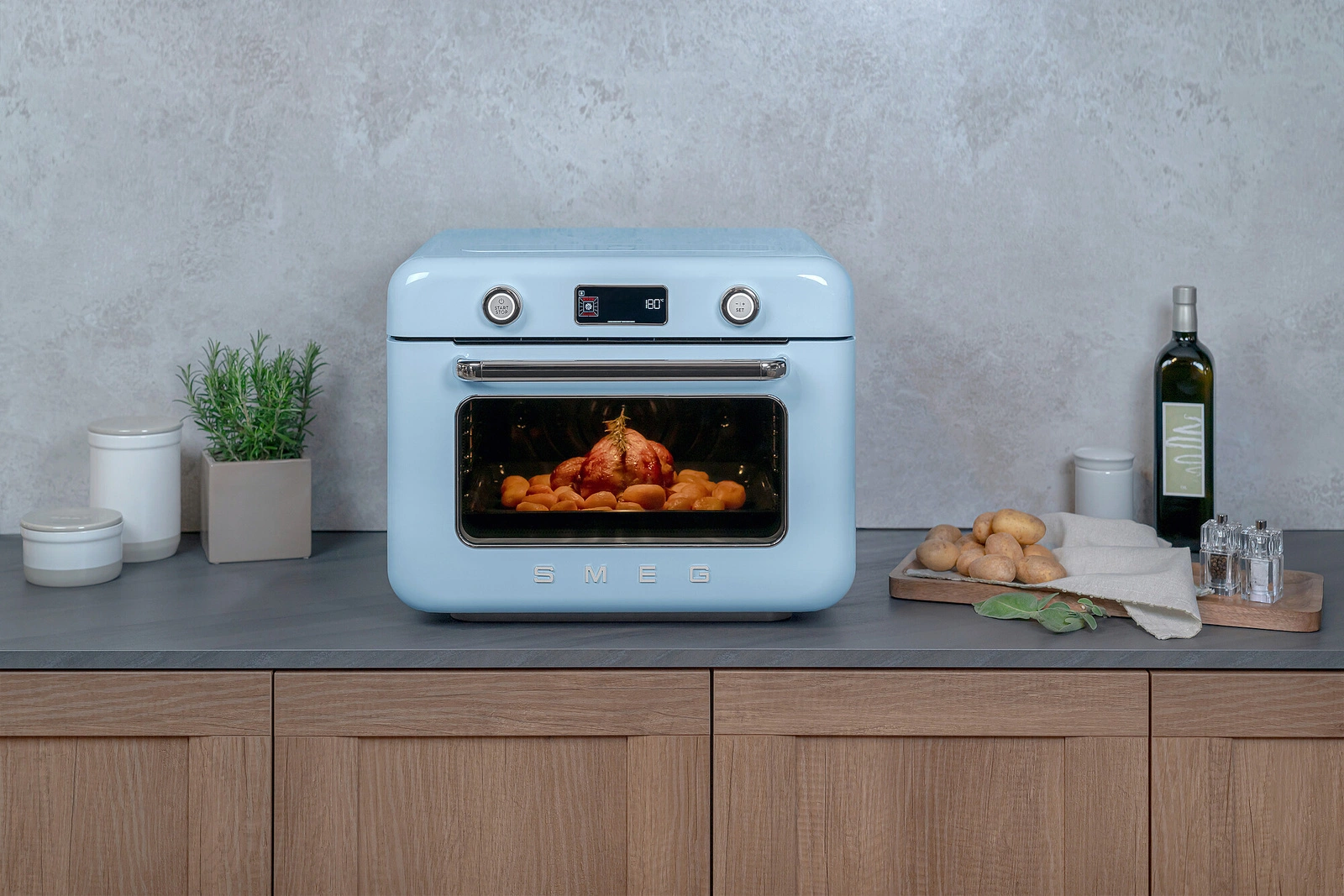 Piekarnik nablatowy z funkcją pary COF01PBEU - Smeg to zaawansowane urządzenie kuchenne, które łączy w sobie nowoczesny design z najwyższą funkcjonalnością. Idealny dla osób ceniących precyzję gotowania oraz zdrowy styl życia. Dzięki innowacyjnej technologii pary, piekarnik pozwala na przygotowanie potraw o doskonałej teksturze, zachowując wszystkie wartości odżywcze i naturalny smak składników.