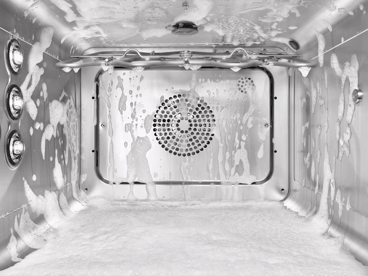 • Technologia DualSteam: Dzięki dwóm dyszom parowym, para rozprowadzana jest równomiernie w całej komorze, zapewniając idealne rezultaty przy każdym użyciu.