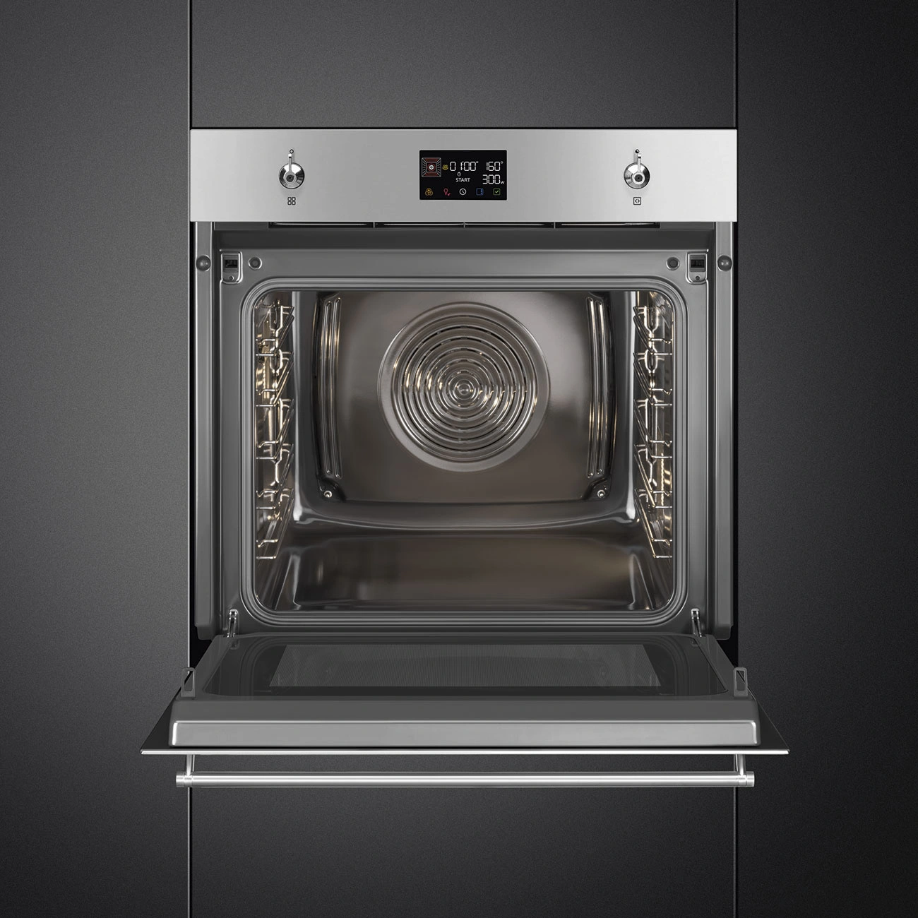 Dzięki eleganckiemu, klasycznemu wykończeniu, piekarnik Smeg doskonale wkomponuje się w każdą kuchnię – zarówno nowoczesną, jak i tradycyjną. Solidne materiały i staranne wykonanie gwarantują trwałość oraz łatwość utrzymania w czystości. Przemyślane rozwiązania techniczne, takie jak oświetlenie wnętrza i system chłodzenia, zwiększają wygodę użytkowania oraz bezpieczeństwo.