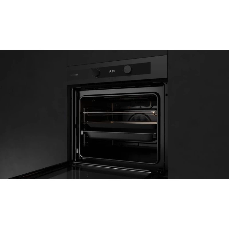 • Pojemność 70 litrów zapewnia wystarczająco dużo miejsca na pieczenie dużych dań, a teleskopowe prowadnice ułatwiają wysuwanie i wsuwanie blach.