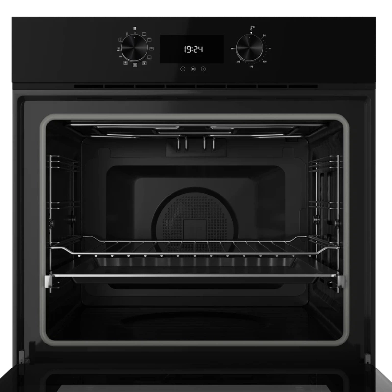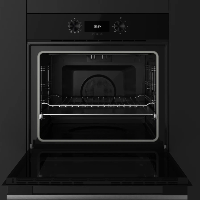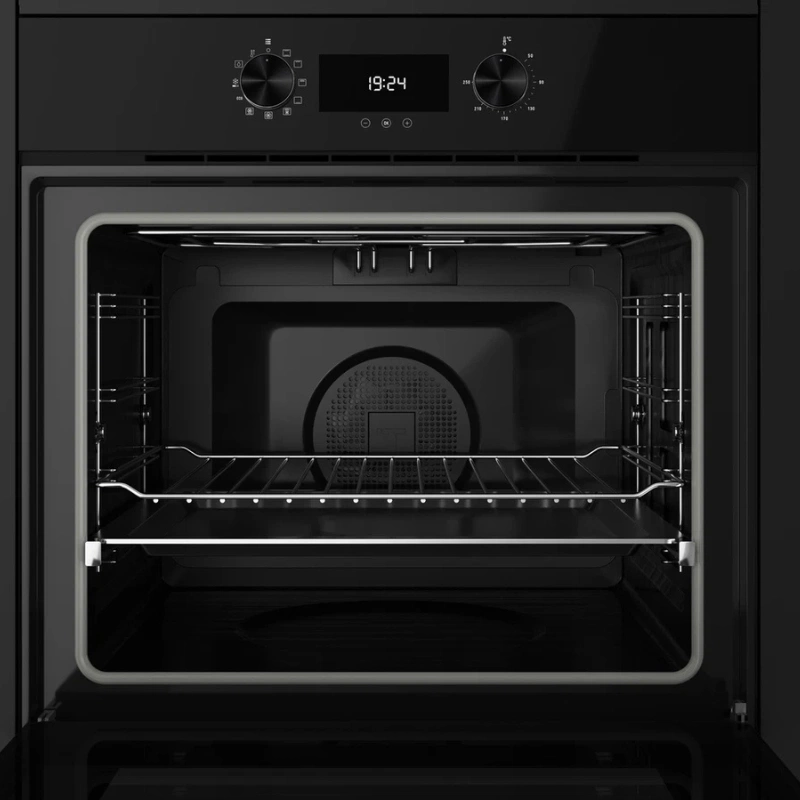 Elektroniczny panel sterowania z wyświetlaczem LED zapewnia łatwą obsługę i precyzyjne ustawienie parametrów. Dzięki termoobiegowi temperatura jest równomiernie rozprowadzana w całej komorze, co gwarantuje doskonałe rezultaty każdego dania.
