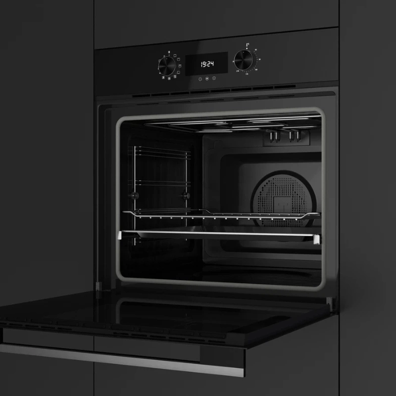 Czarna frontowa szyba nadaje piekarnikowi nowoczesny i minimalistyczny wygląd, który doskonale komponuje się z każdym stylem kuchni. Dodatkowo, wnętrze pokryte jest powłoką Easy Clean, która sprawia, że usuwanie zabrudzeń jest niezwykle proste – wystarczy przetrzeć powierzchnię wilgotną ściereczką.