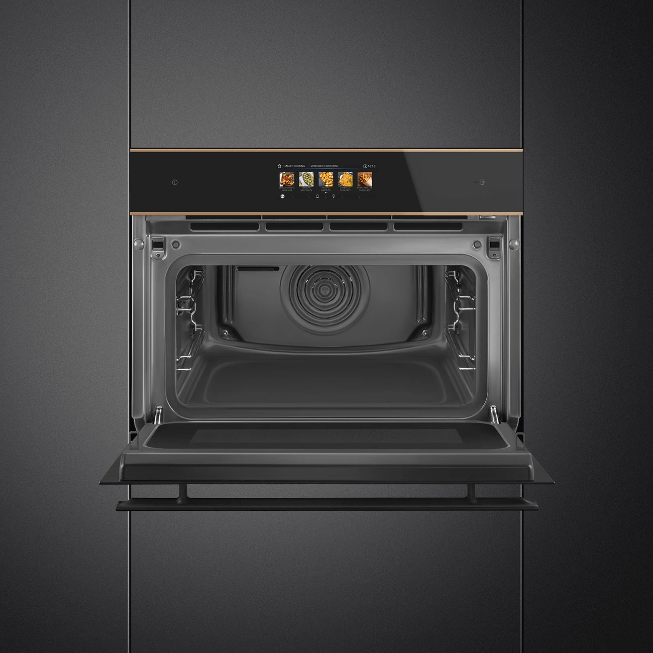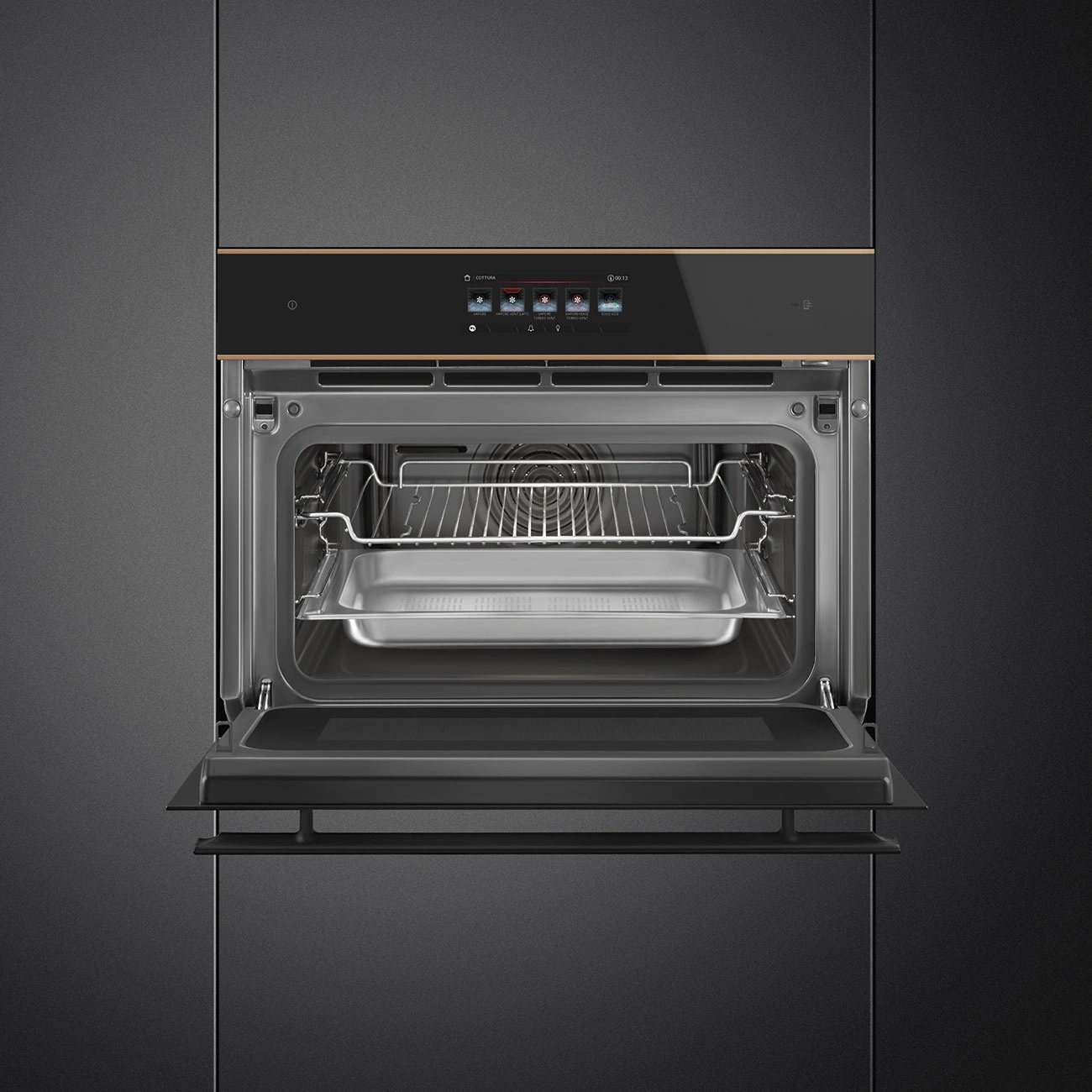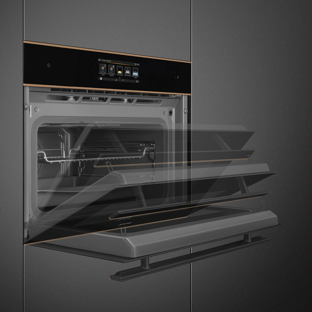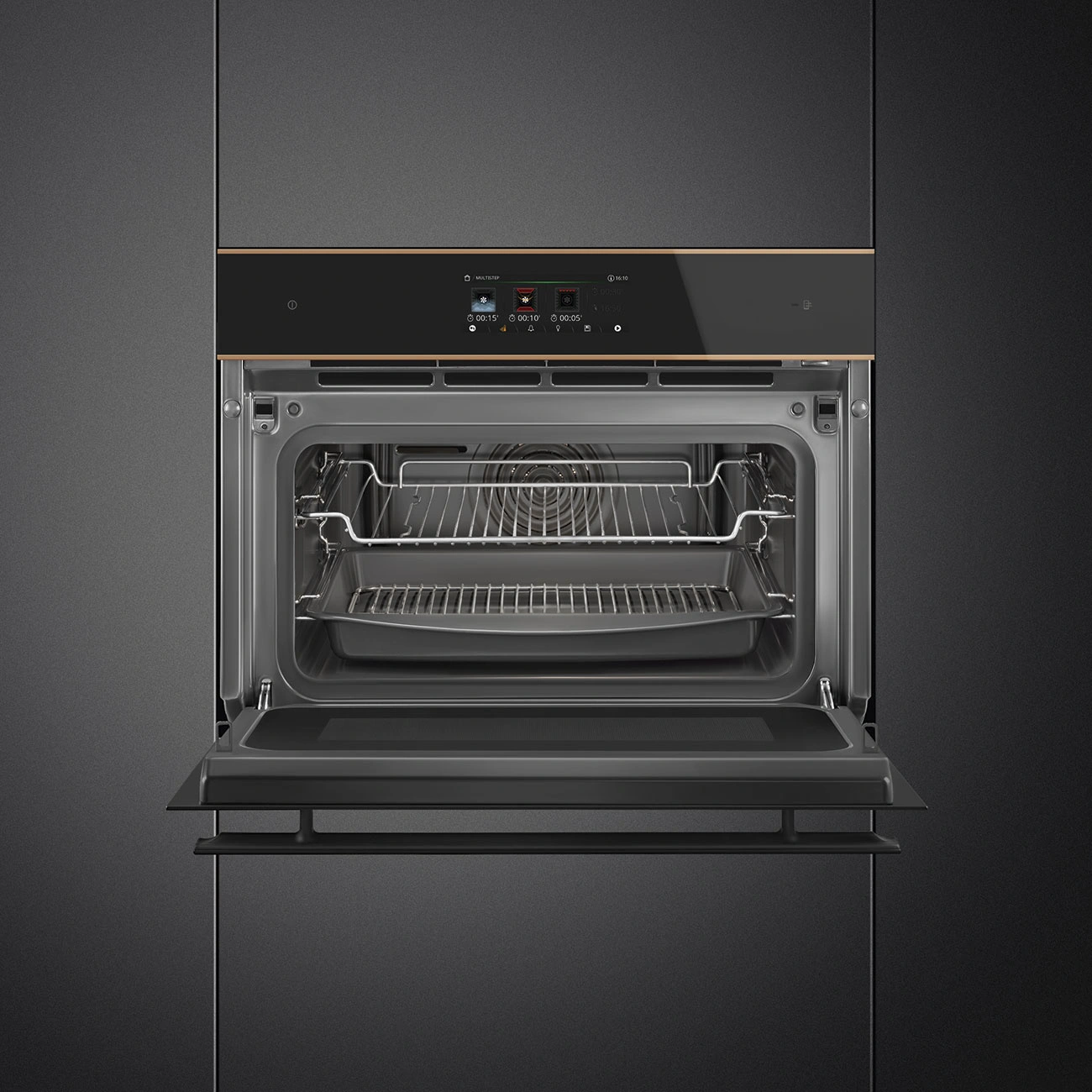 Design piekarnika Smeg SO4606WAPNR stanowi połączenie stylu vintage z nowoczesną ergonomią. Biała, matowa obudowa oraz detaliczne wykończenia podkreślają wyjątkowy charakter urządzenia. Przejrzysty panel sterowania z czytelnym wyświetlaczem pozwala na łatwą i intuicyjną obsługę, nawet dla mniej zaawansowanych użytkowników. Ten model będzie nie tylko praktycznym narzędziem w kuchni, ale także stylowym elementem wnętrza.