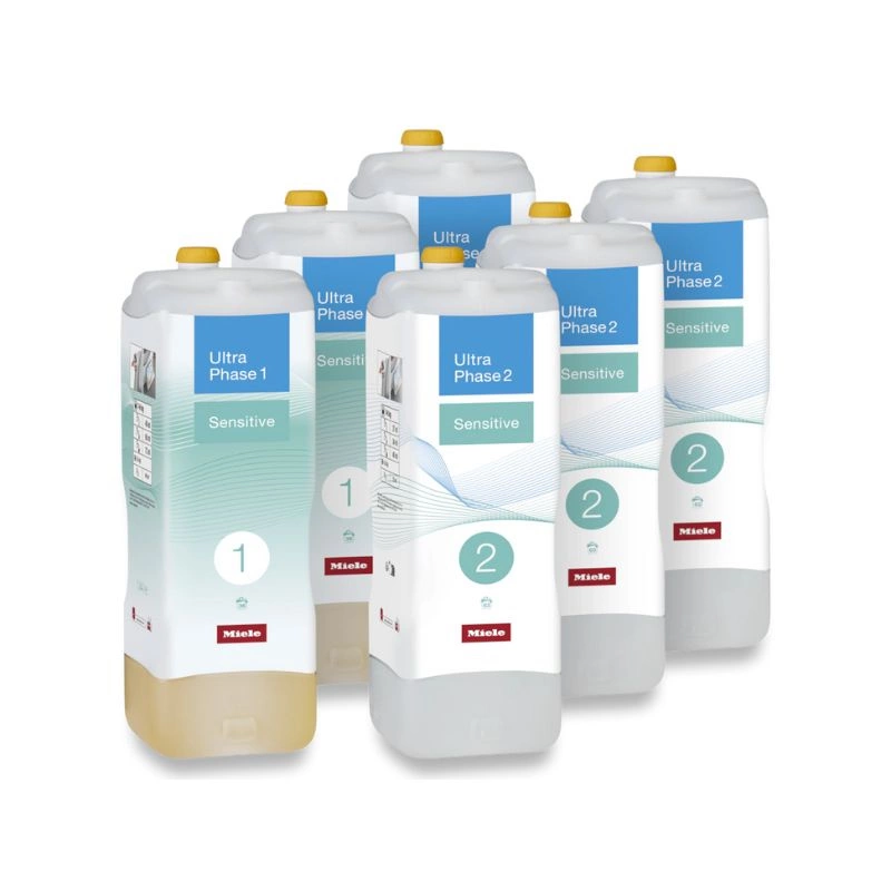 Miele Set 6 UltraPhase Sensitive to zestaw środków piorących do pralek i pralko-suszarek Miele z systemem TwinDos. Został stworzony z myślą o osobach o wrażliwej skórze, które chcą mieć pewność, że ich ubrania są dokładnie wyczyszczone, a jednocześnie nie podrażnią ich skóry. Środki piorące Miele UltraPhase Sensitive są pozbawione zapachów i barwników, dzięki czemu są wyjątkowo delikatne dla skóry. Jednocześnie są bardzo skuteczne w działaniu, usuwają nawet najtrudniejsze zabrudzenia.
