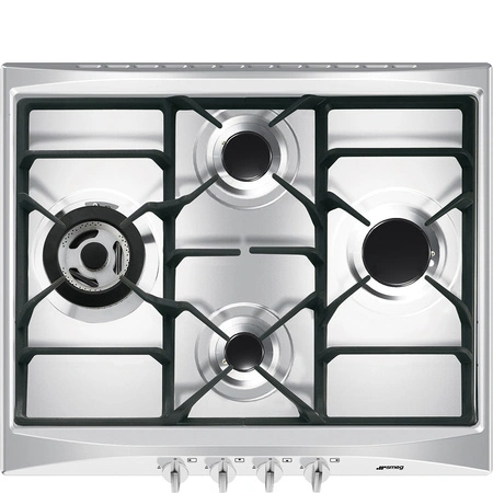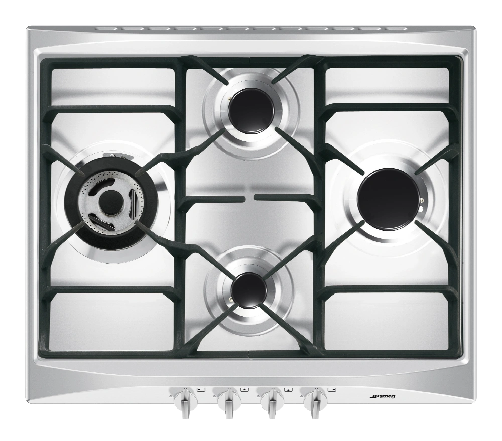 Płyta gazowa 60 cm Selezione SR264XGH2 marki Smeg to doskonałe rozwiązanie dla każdej kuchni, łączące w sobie nowoczesny design z funkcjonalnością na najwyższym poziomie. Elegancka, wykonana z wysokiej jakości materiałów, idealnie wpasuje się zarówno w tradycyjne, jak i nowoczesne wnętrza, zapewniając wygodę i pełną kontrolę nad procesem gotowania.