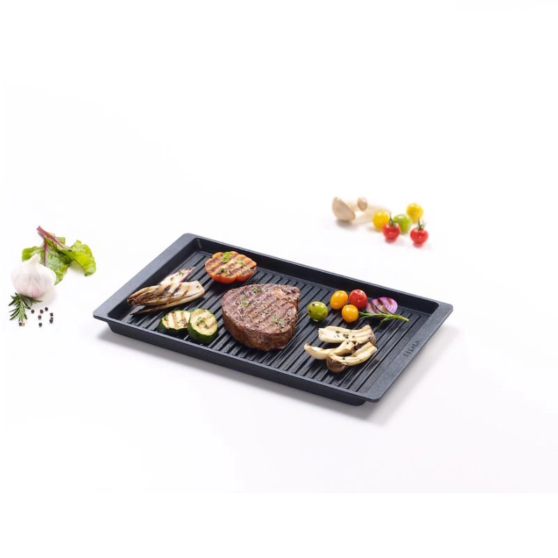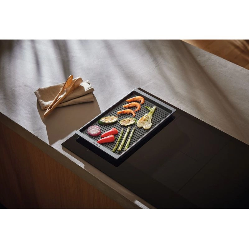 Idealne grillowanie na płycie indukcyjnej: Płyta grillowa Miele Gourmet została zaprojektowana specjalnie do współpracy z płytami indukcyjnymi Miele. Dzięki równomiernemu rozprowadzaniu ciepła uzyskasz idealnie grillowane potrawy za każdym razem.