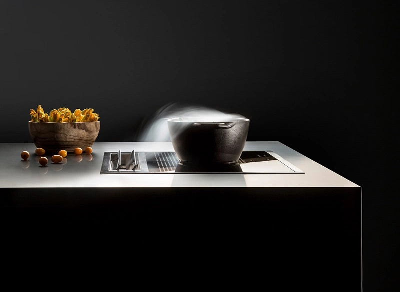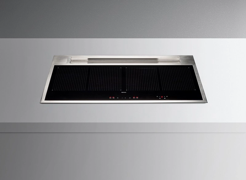 Zintegrowany zestaw: Ten zestaw zintegrowany FALMEC zawiera okap z silnikiem zintegrowanym z płytą indukcyjną, co pozwala zaoszczędzić miejsce na blacie kuchennym.
