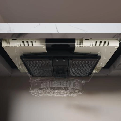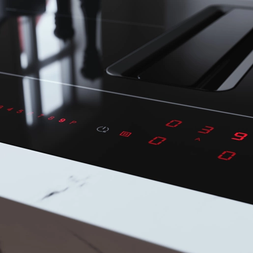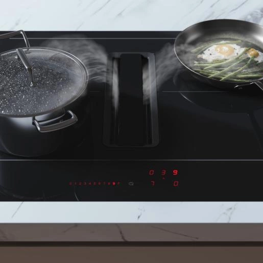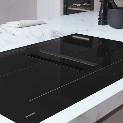 Tradycyjne okapy często zaburzają harmonijną aranżację kuchni, wymagając dodatkowej przestrzeni lub specjalnego ukrycia. ASKO proponuje rewolucyjne rozwiązanie – okap zintegrowany z płytą indukcyjną, który: