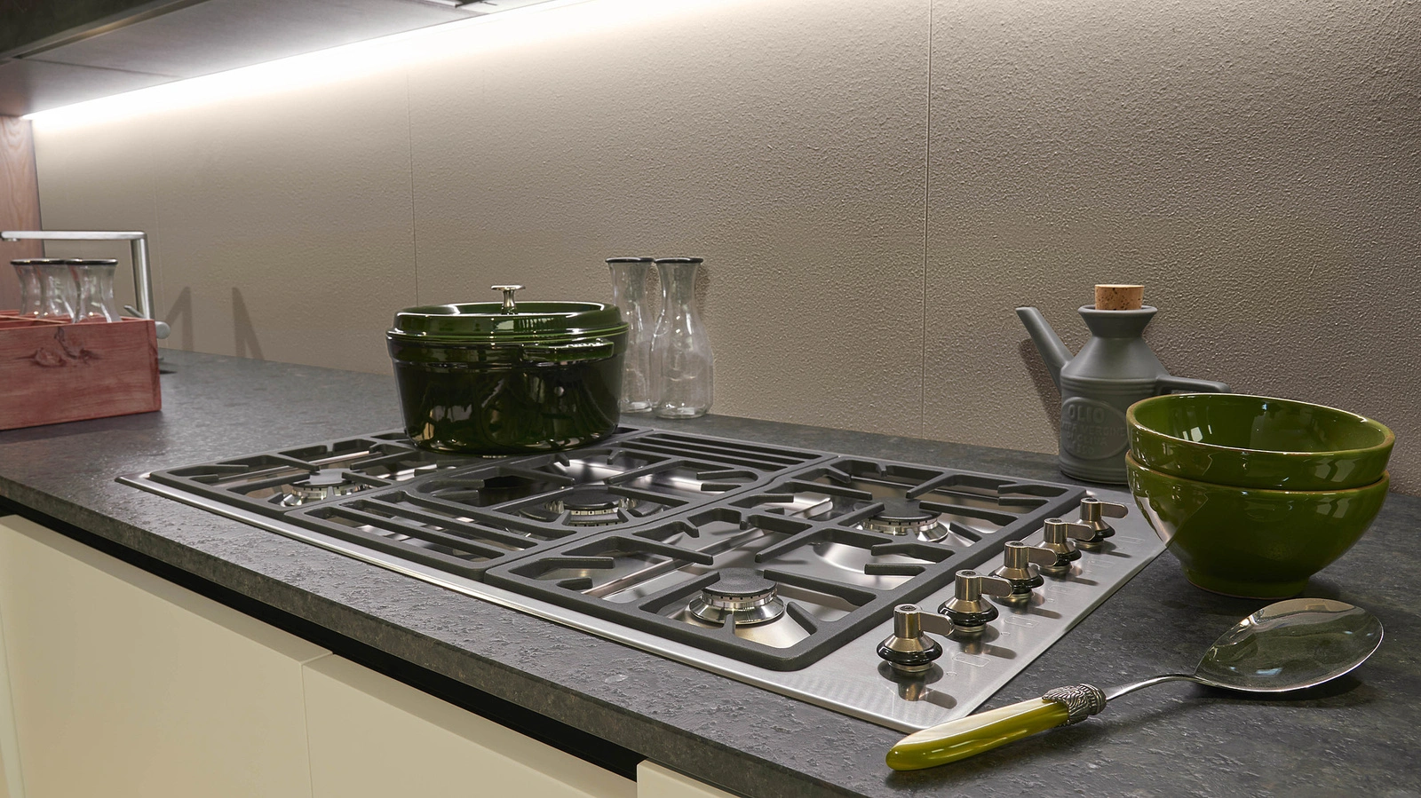 The 90 cm stainless steel gas hob combines functionality and design. The five zones provide maximum freedom in the kitchen, with easy cleaning and a durable build