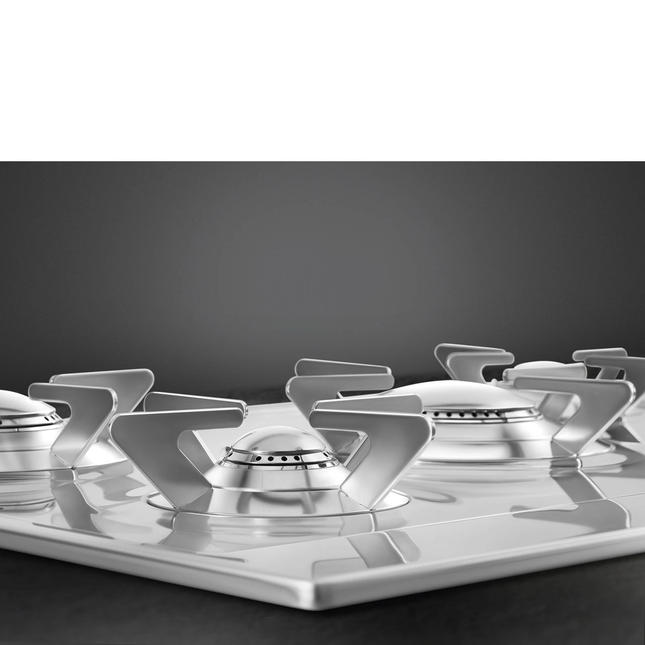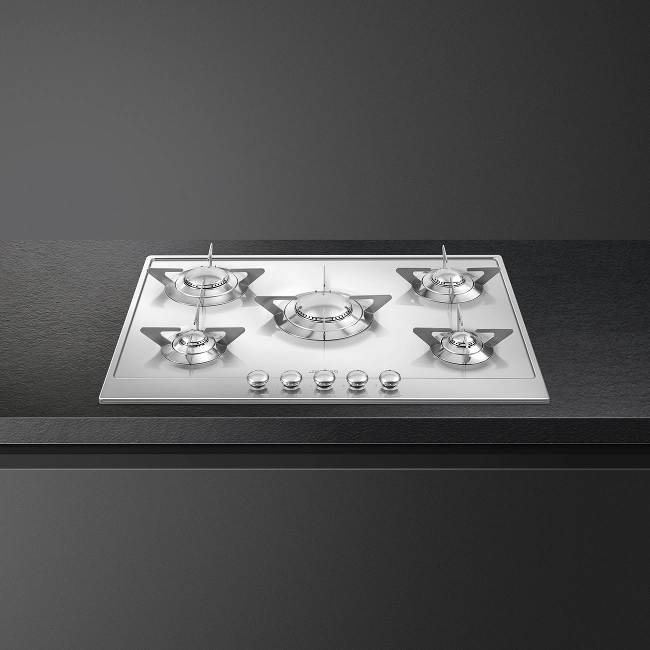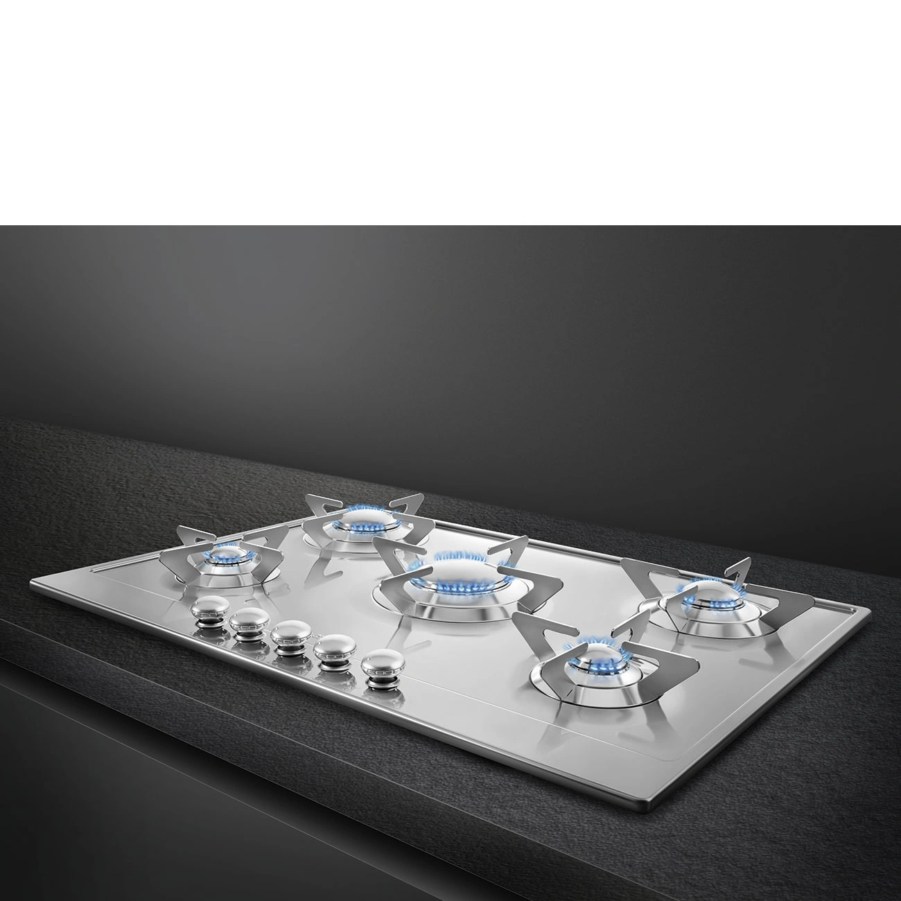 Płyta gazowa Smeg P705ES wyposażona jest w pięć palników o zróżnicowanej mocy, co umożliwia jednoczesne przygotowanie wielu potraw. Intuicyjne pokrętła sterujące ułatwiają precyzyjną regulację płomienia, a zabezpieczenie przeciwwypływowe zapewnia bezpieczeństwo podczas codziennego użytkowania. Powierzchnia płyty wykonana jest ze stali nierdzewnej, co nie tylko podkreśla jej nowoczesny wygląd, ale także ułatwia czyszczenie i konserwację.