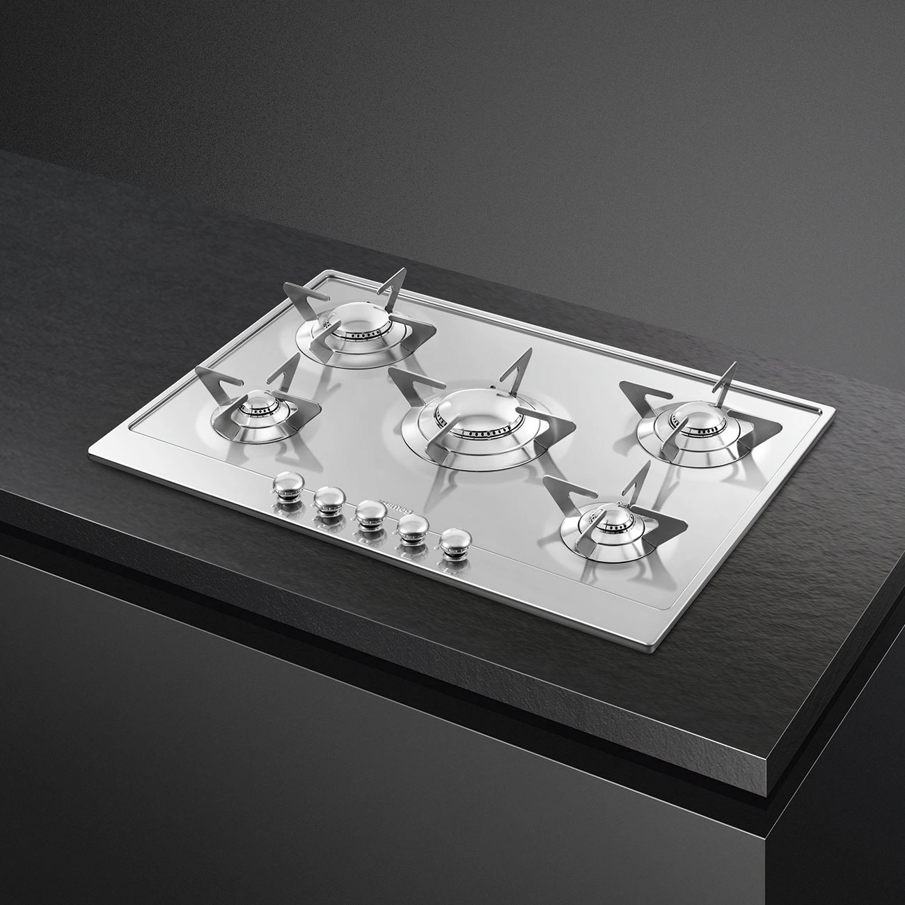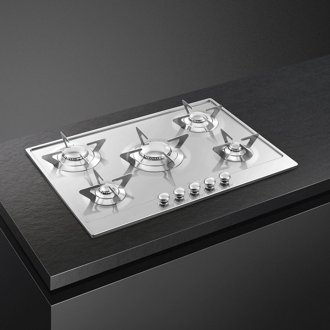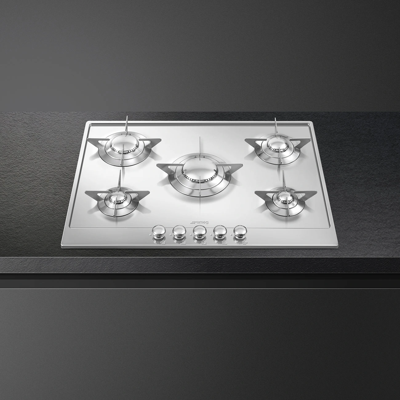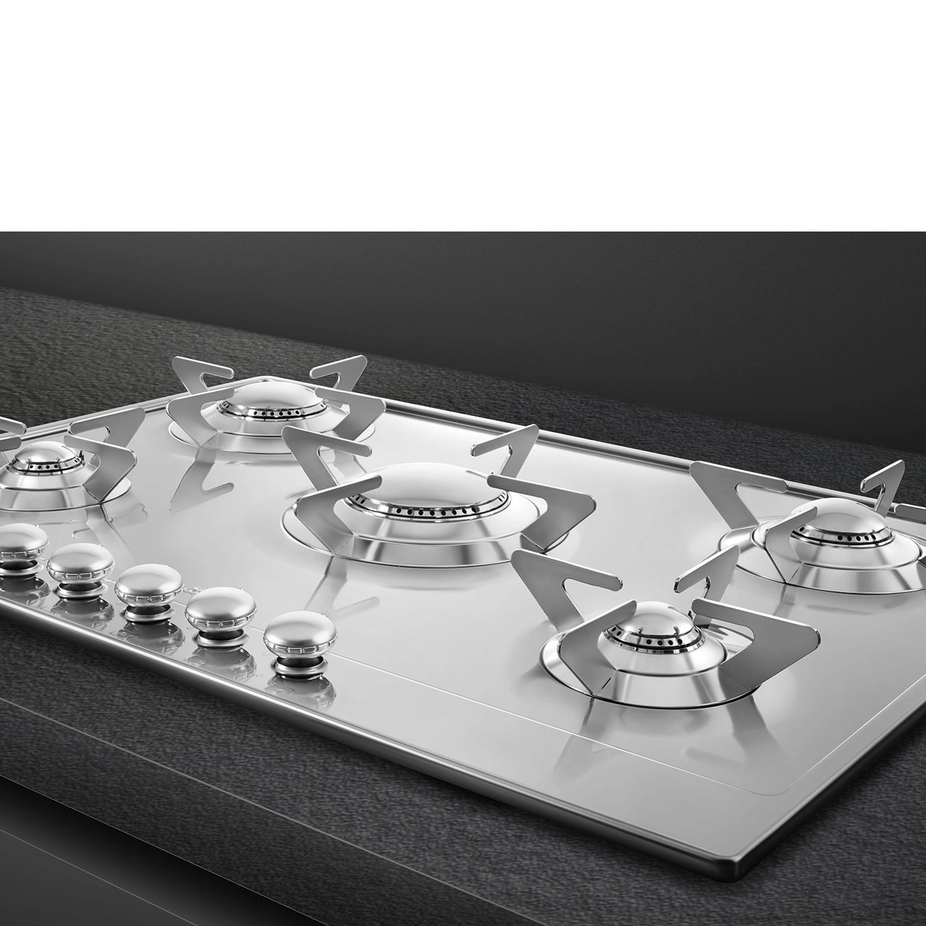 Płyta gazowa Smeg P705ES wyposażona jest w pięć palników o zróżnicowanej mocy, co umożliwia jednoczesne przygotowanie wielu potraw. Intuicyjne pokrętła sterujące ułatwiają precyzyjną regulację płomienia, a zabezpieczenie przeciwwypływowe zapewnia bezpieczeństwo podczas codziennego użytkowania. Powierzchnia płyty wykonana jest ze stali nierdzewnej, co nie tylko podkreśla jej nowoczesny wygląd, ale także ułatwia czyszczenie i konserwację.