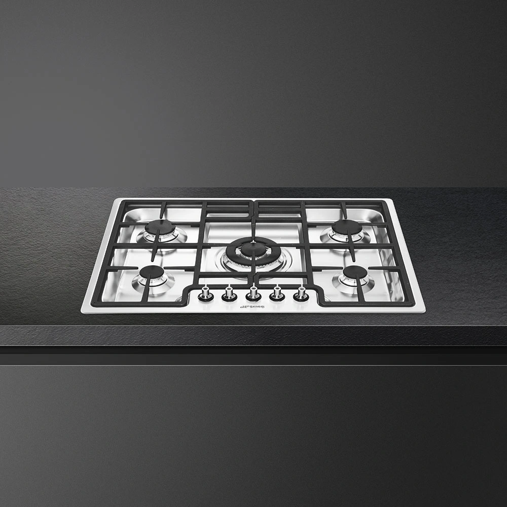 Nowoczesna płyta gazowa Smeg zapewnia szybkie i precyzyjne gotowanie dzięki czterem palnikom o zróżnicowanej mocy. Pozwala to na jednoczesne przygotowywanie różnorodnych potraw, dostosowując intensywność palnika do potrzeb użytkownika. Stabilne i wytrzymałe ruszty żeliwne gwarantują bezpieczne ustawienie naczyń podczas gotowania, a łatwe do czyszczenia materiały ułatwiają utrzymanie płyty w idealnym stanie.