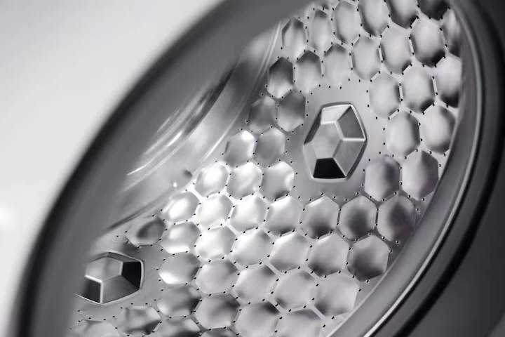 Pionierski bęben InfinityCare wyposażony jest w innowacyjne wypustki 3D, które zastąpiły tradycyjne zabieraki. Pralka dostosowuje się do rodzaju tkanin oraz ich wagi, regulując kierunek i prędkość pracy bębna, co zapewnia skuteczność prania oraz ochronę tkanin.