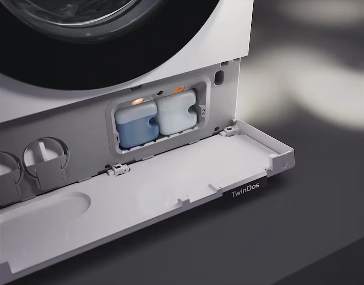 System TwinDos automatycznie dozuje dwufazowy detergent, dostosowując jego ilość do koloru, stopnia zabrudzenia, wagi, twardości wody i programu. Dzięki temu pranie jest skuteczne i powtarzalne, a zużycie środków piorących optymalne.