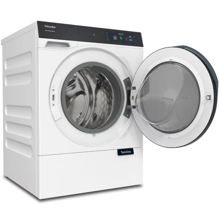 System TwinDos automatycznie dozuje dwufazowy detergent, dostosowując jego ilość do koloru, stopnia zabrudzenia, wagi, twardości wody i programu. Dzięki temu pranie jest skuteczne i powtarzalne, a zużycie środków piorących optymalne.