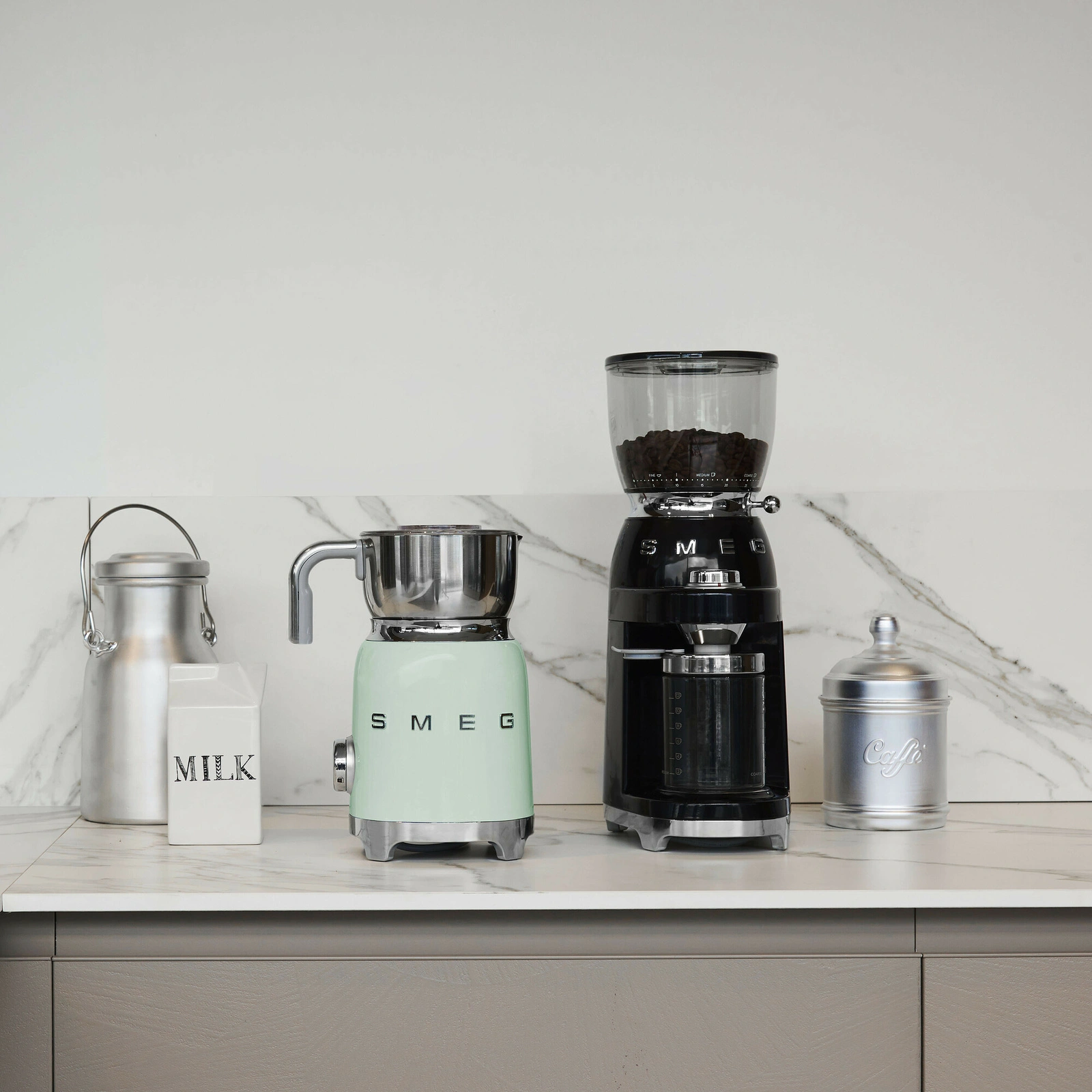 Spieniacz do mleka Smeg w pastelowej zieleni MFF11PGEU to idealne rozwiązanie dla miłośników kawy i napojów mlecznych, którzy cenią sobie zarówno funkcjonalność, jak i stylowy design. Ten elegancki spieniacz pozwala w prosty sposób przygotować gęstą, kremową piankę mleczną, która doskonale uzupełni kawę latte, cappuccino czy gorącą czekoladę. Jego unikalny kolor w odcieniu pastelowej zieleni wprowadzi do Twojej kuchni nutę świeżości i oryginalności.