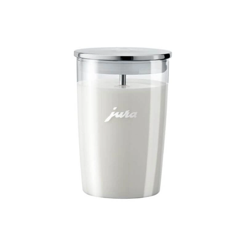 Pojemnik ze szkła na mleko stanowi doskonałe rozwiązanie dla pasjonatów kawowych delikatności, którzy od czasu do czasu pragną rozkoszować się napojami przygotowanymi z mlekiem lub pianką mleczną. Stworzony jako higieniczna alternatywa do przechowywania mleka w jego oryginalnym opakowaniu (kartonie lub plastikowej butelce), ten pojemnik o wzornictwie nawiązującym do urządzeń JURA wykonany jest z wytrzymałego szkła hartowanego.