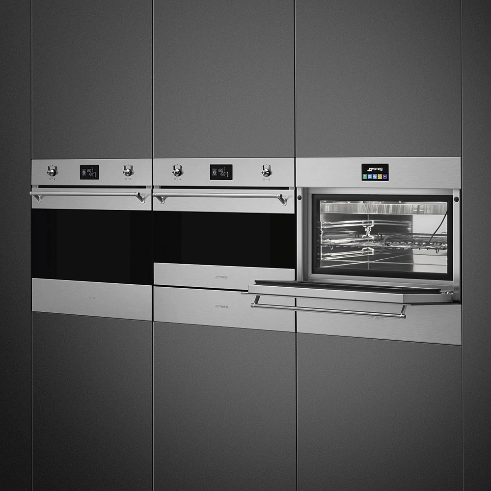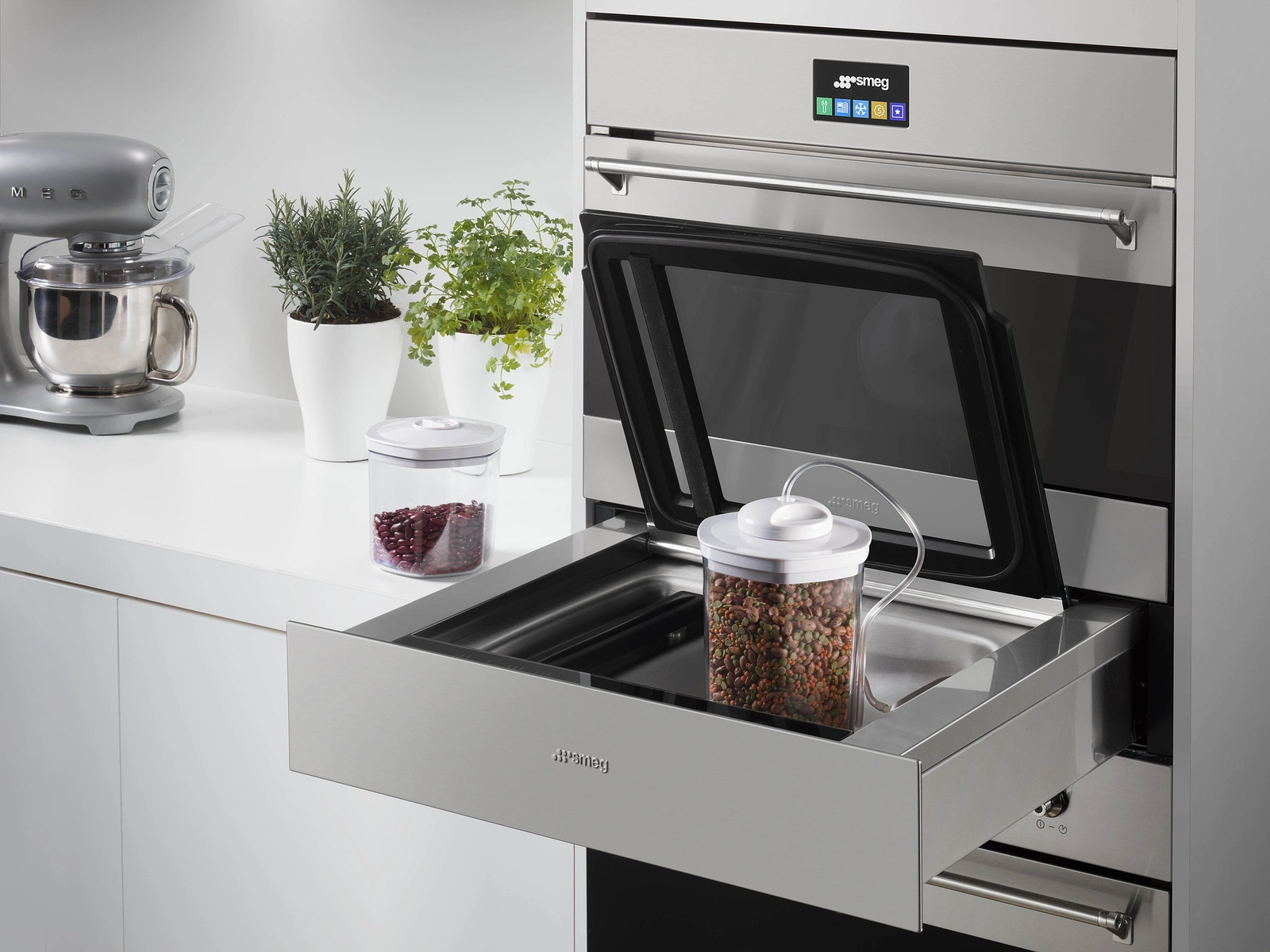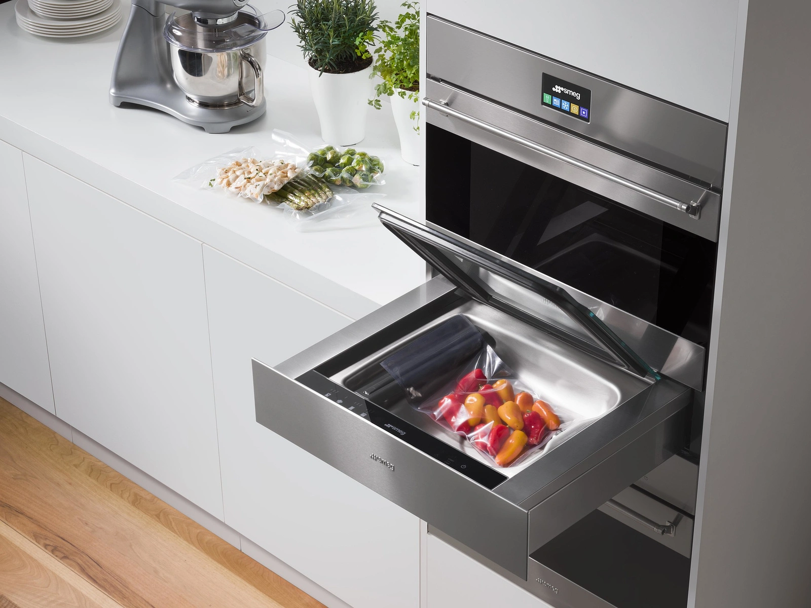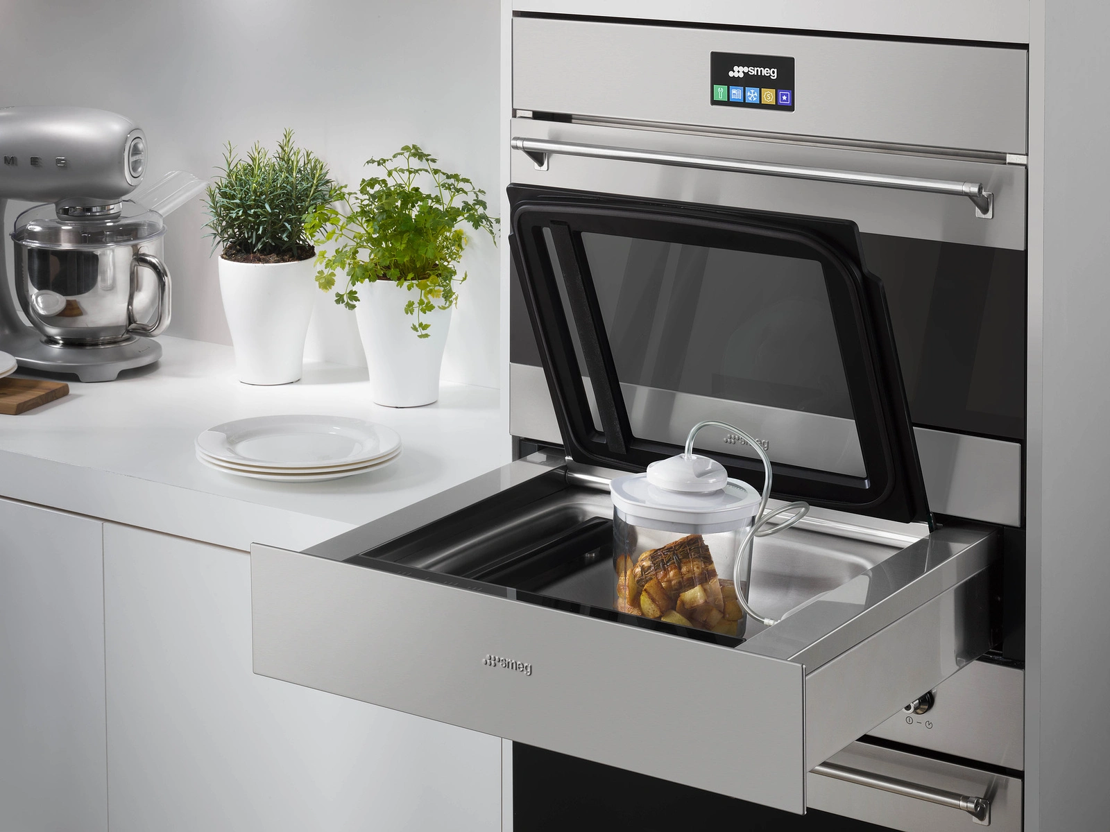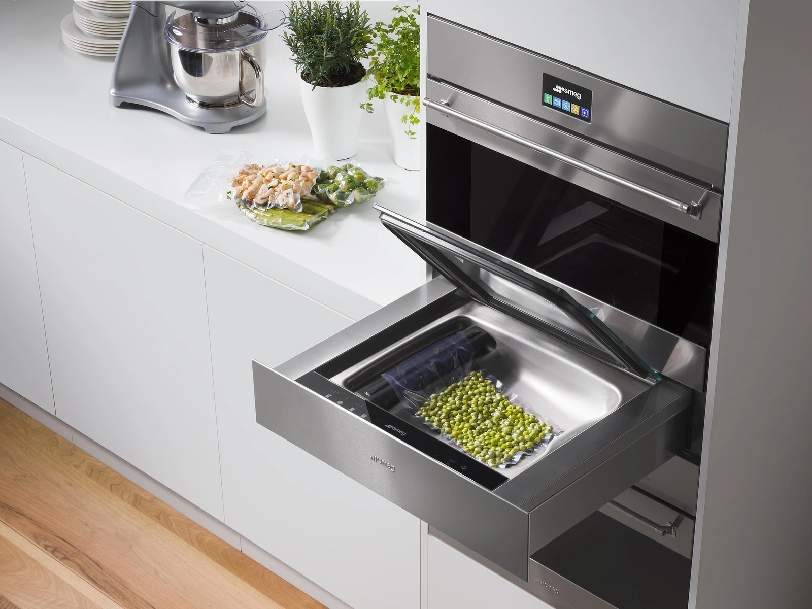 Funkcjonalność i design urządzenia Classica CPV315X to połączenie elegancji oraz praktyczności charakterystycznej dla marki Smeg. Kompaktowa szuflada została zaprojektowana tak, aby łatwo integrować się z różnymi aranżacjami kuchennymi, nie zajmując przy tym dużo miejsca. Intuicyjny panel sterowania umożliwia szybkie uruchomienie procesu pakowania próżniowego, a solidne materiały gwarantują długą żywotność produktu. Dzięki precyzyjnemu działaniu, szuflada pozwala na oszczędność czasu i ograniczenie strat żywności, co przekłada się na mniejsze wydatki i ekologiczne gospodarowanie zasobami.