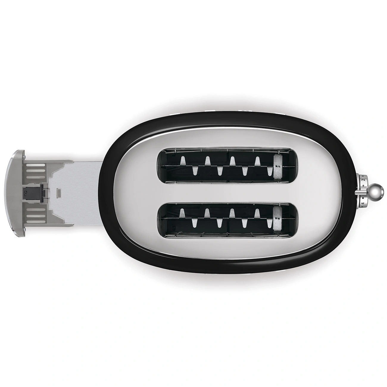 Toster Smeg wyposażono w praktyczne funkcje, takie jak opcja podgrzewania, rozmrażania oraz anulowania tostowania w dowolnym momencie. Dzięki temu produkt jest nie tylko wszechstronny, ale również bardzo wygodny w codziennym użytkowaniu. Wyjmowana tacka na okruchy ułatwia utrzymanie urządzenia w czystości, co przekłada się na higienę i długą żywotność sprzętu.