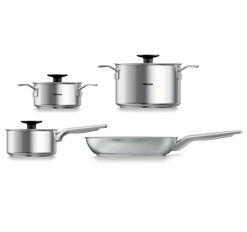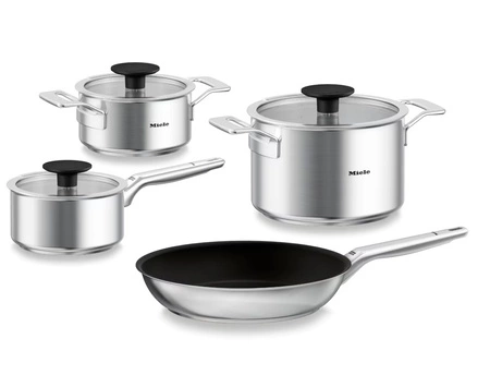 Design MIELE to synonim elegancji i funkcjonalności. Gładkie, zaokrąglone krawędzie nie tylko ułatwiają mycie, ale także nadają zestawowi nowoczesny, minimalistyczny charakter, który doskonale komponuje się z każdym stylem kuchni. Solidne, ergonomiczne uchwyty z najwyższej jakości stali nierdzewnej zapewniają pewny i bezpieczny chwyt, nawet w rękawicach kuchennych. To połączenie formy i funkcji, które służy przez lata.
