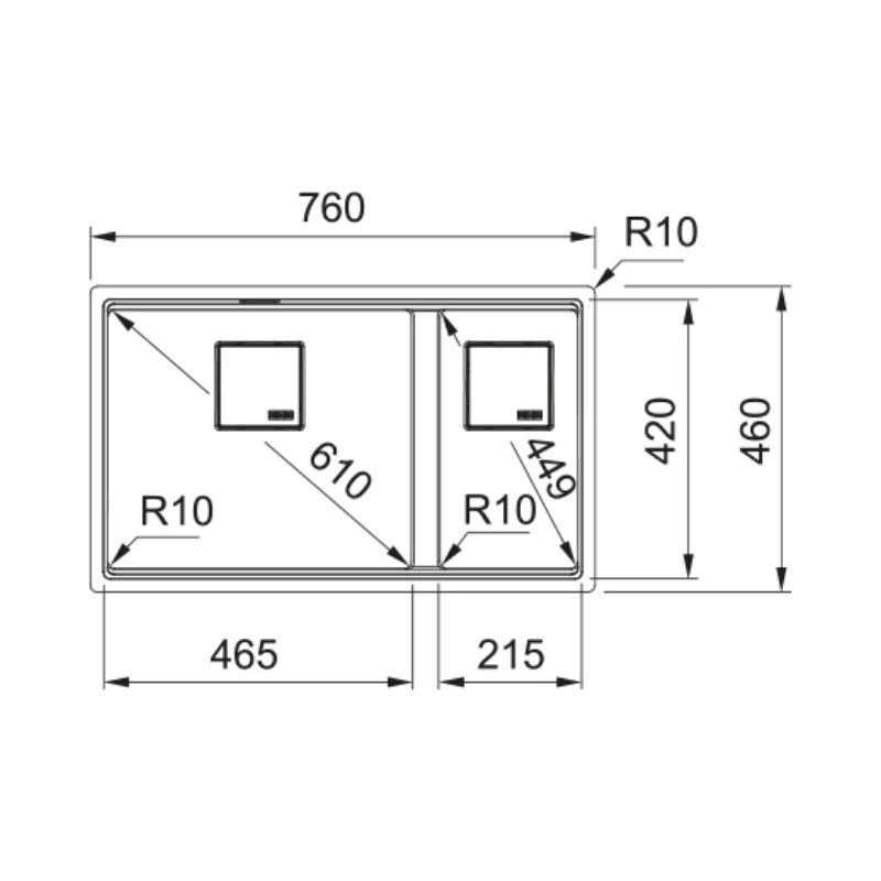 • Wymiary komory 1: 465 x 420 x 200 mm