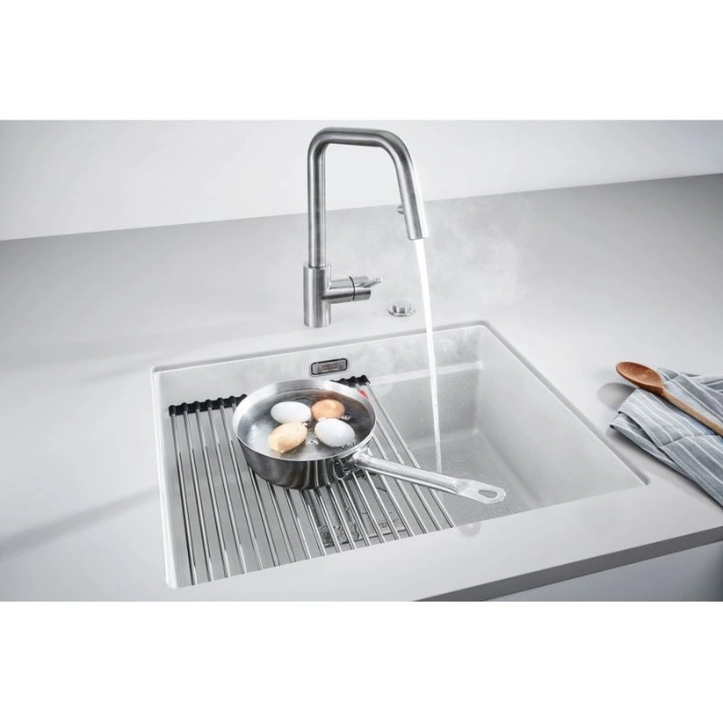 - Nowoczesny design: biały kolor i minimalistyczna forma zlewozmywaka doskonale pasują do każdej aranżacji kuchni.