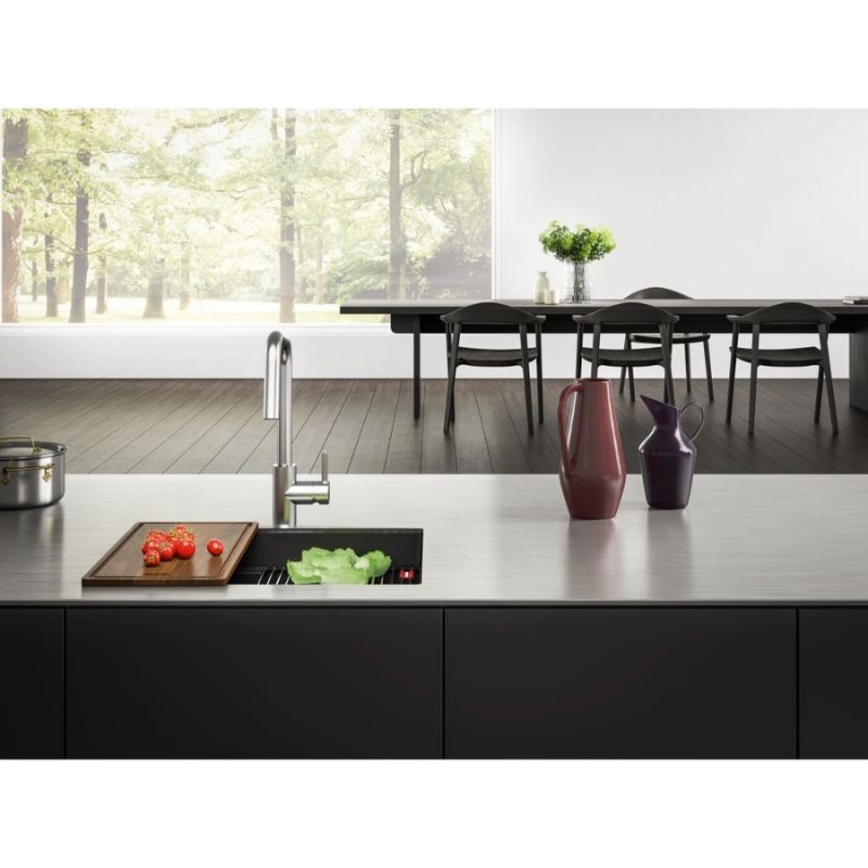 - Nowoczesny design: Czarny matowy kolor i minimalistyczna forma zlewozmywaka doskonale pasują do każdej aranżacji kuchni.