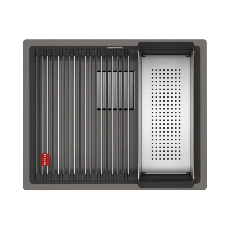 Prezentowany zlewozmywak FRANKE Kanon KNG jest niezwykle trwały i odporny na zarysowania, uderzenia i działanie wysokich temperatur. Gładka powierzchnia zlewozmywaka jest łatwa do czyszczenia, a kolor kamienny szary maskuje drobne zabrudzenia i odciski palców, dzięki czemu zlewozmywak zawsze będzie wyglądał nienagannie. Wyprodukowany jest z Fragranitu+, który jest materiałem wyprodukowanym w 80% z naturalnego granitu. Dzięki zastosowaniu bardzo drobnych cząsteczek granitu, uzyskano zlewozmywak idealnie gładki i delikatny w dotyku. Głębokość komory wynosi 20 cm i zapewnia komfortowe użytkowanie i zapobiega rozchlapywaniu wody.