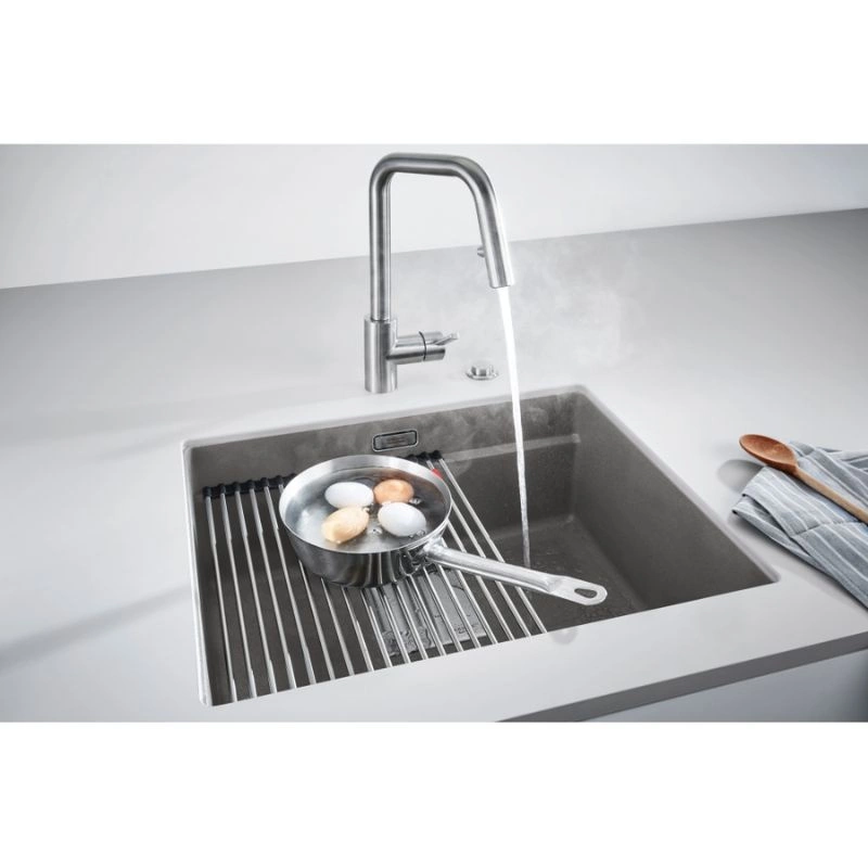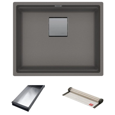 - Nowoczesny design: kolor kamienny szary i minimalistyczna forma zlewozmywaka doskonale pasują do każdej aranżacji kuchni.