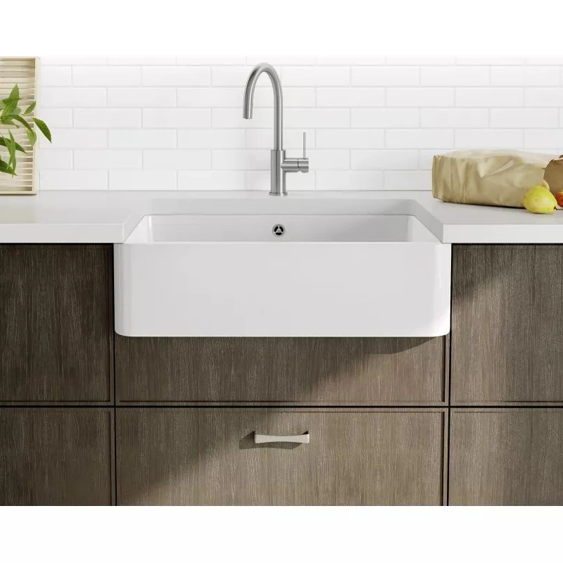 Elegancki zlewozmywak ceramiczny w stylu modern farmhouse