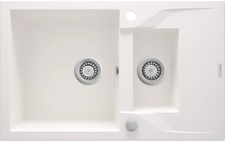 Zlewozmywak został wyposażony w innowacyjny syfon „Space Saver”. Jeśli do tej pory dręczyły Cię kolanka i rury zajmujące całą przestrzeń w szafce, jest to rozwiązanie dla Twojej kuchni. Teleskopowa budowa i specjalna konstrukcja pozwala dopasować ustawienie syfonu do potrzeb. Dzięki temu w szafce prosto wygospodarować dużo więcej miejsca, które można wykorzystać na domowe przetwory czy kosze do segregacji odpadów. Istnieje też możliwość podłączenia do syfonu pralki lub zmywarki. I co najważniejsze — syfon dostajesz w komplecie!