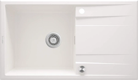 Zlewozmywak jest wyposażony w nowoczesny syfon „Space Saver”. Jeśli do tej pory przeszkadzały Ci kolanka i rury zajmujące całą przestrzeń w szafce, jest to rozwiązanie dla Ciebie. Specjalna konstrukcja i teleskopowa budowa pozwala dopasować ustawienie syfonu do potrzeb. Dzięki temu w szafce prosto wygospodarować dużo więcej miejsca na przykład na domowe przetwory czy kosze na śmieci. Istnieje też możliwość podłączenia do syfonu pralki lub zmywarki. I co najważniejsze — syfon dostajesz w komplecie!