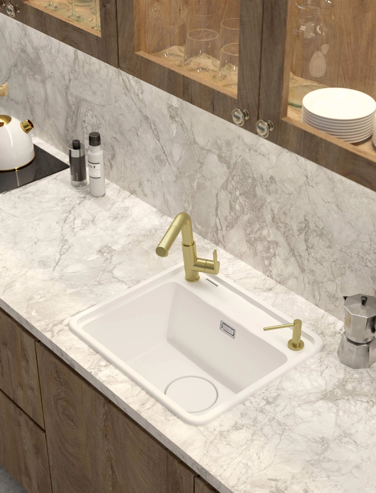 Pomimo zachowania tych samych wymiarów zewnętrznych, nasze zlewozmywaki MOMI oferują zaskakującą pojemność, stając się tym samym mistrzem praktyczności w Twojej kuchni. Z łatwością pomieszczą duże garnki czy blachy prosto z piekarnika, oferując nieocenioną przestrzeń, która przekłada się na komfort i swobodę działania.