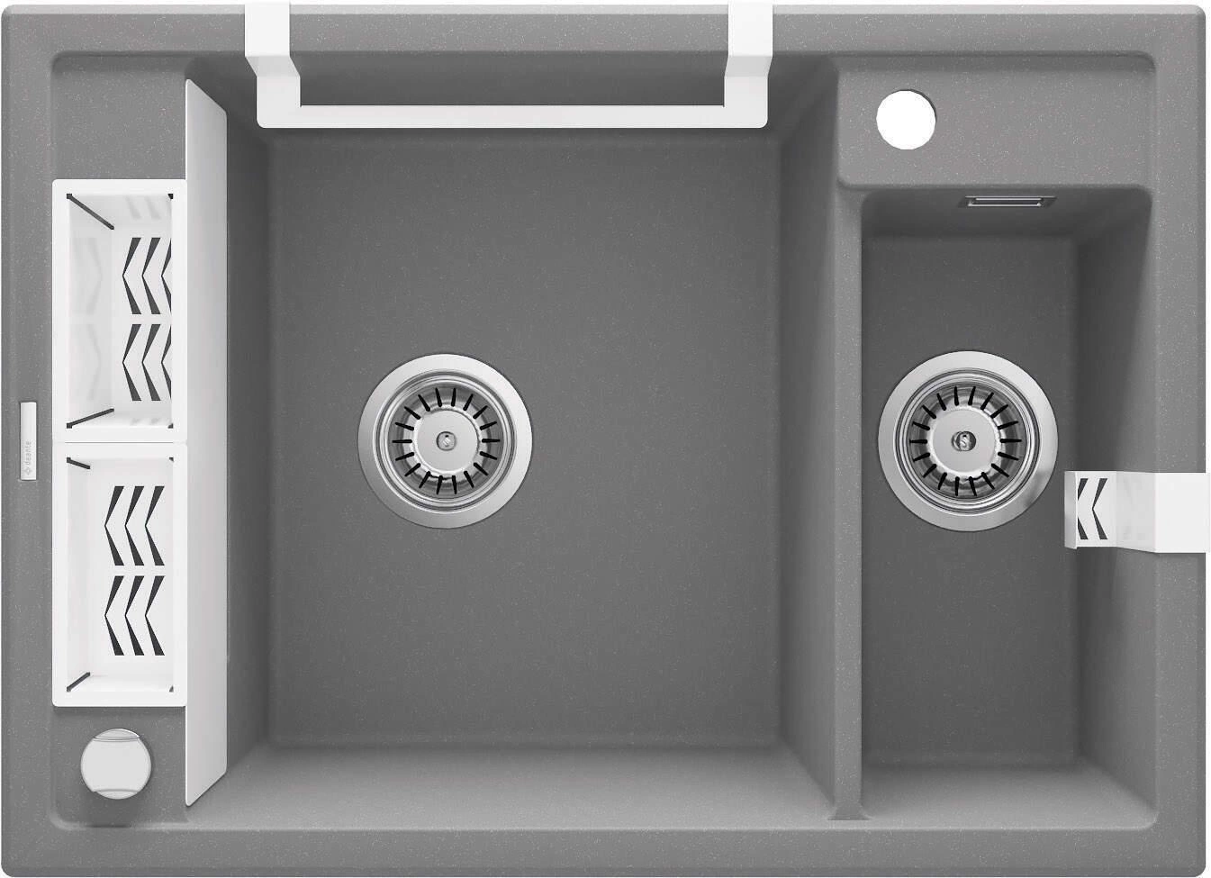 Zlewozmywak granitowy magnetyczny jest to bardzo pomysłowe rozwiązanie. Dzięki wbudowanym magnesom i stalowej maskownicy część bocznej półki może zostać wykorzystana na zwiększenie użyteczności. Powszechnie wiadomo, że w suchym środowisku drobnoustroje nie rozwijają się zbyt szybko, dlatego proponujemy także dedykowane akcesoria uzupełniające. Do ściśle dopasowanych koszyczków z ażurowym dnem odstawisz sztućce, a ściereczkę czy zmywak kuchenny powiesisz do odsączenia na uchwytach. Zlewozmywak granitowy magnetyczny jest odporny na przebarwienia, uderzenia i wysoką temperaturę, zgodnie z normą europejską PN-EN 13310. Innowacyjny, 1,5-komorowy zlewozmywak wspaniale łączy mały rozmiar i potrzebę używania więcej niż jednej komory. Mniejszą część można używać do płukania i suszenia sztućców, delikatnych kieliszków lub rozmrażania żywności. Istnieje możliwość podłączenia młynka.