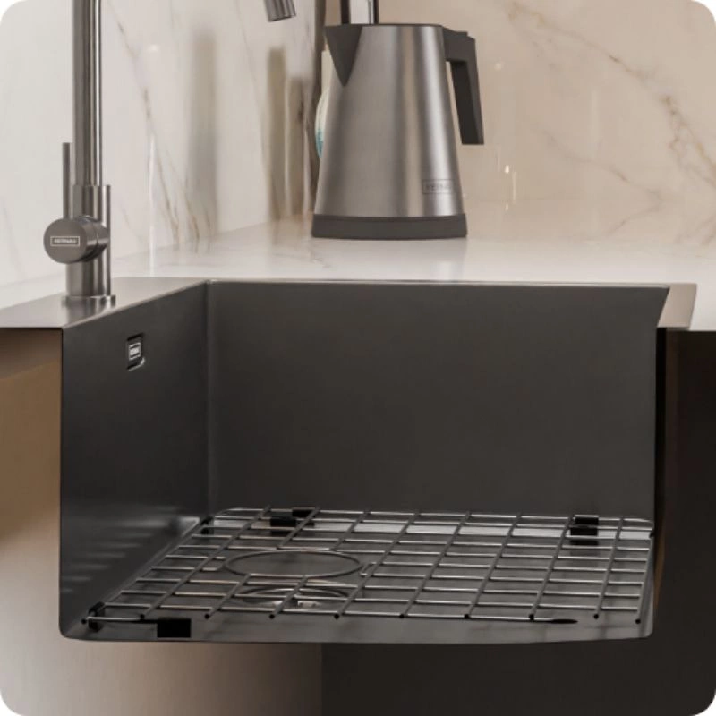 Wyjątkowa trwałość: Powłoka PVD, którą pokryty jest zlewozmywak, zapewnia mu niezrównaną odporność na uszkodzenia mechaniczne, zarysowania, szok termiczny i działanie chemikaliów. Dzięki temu zlewozmywak będzie wyglądać nienagannie przez lata użytkowania.