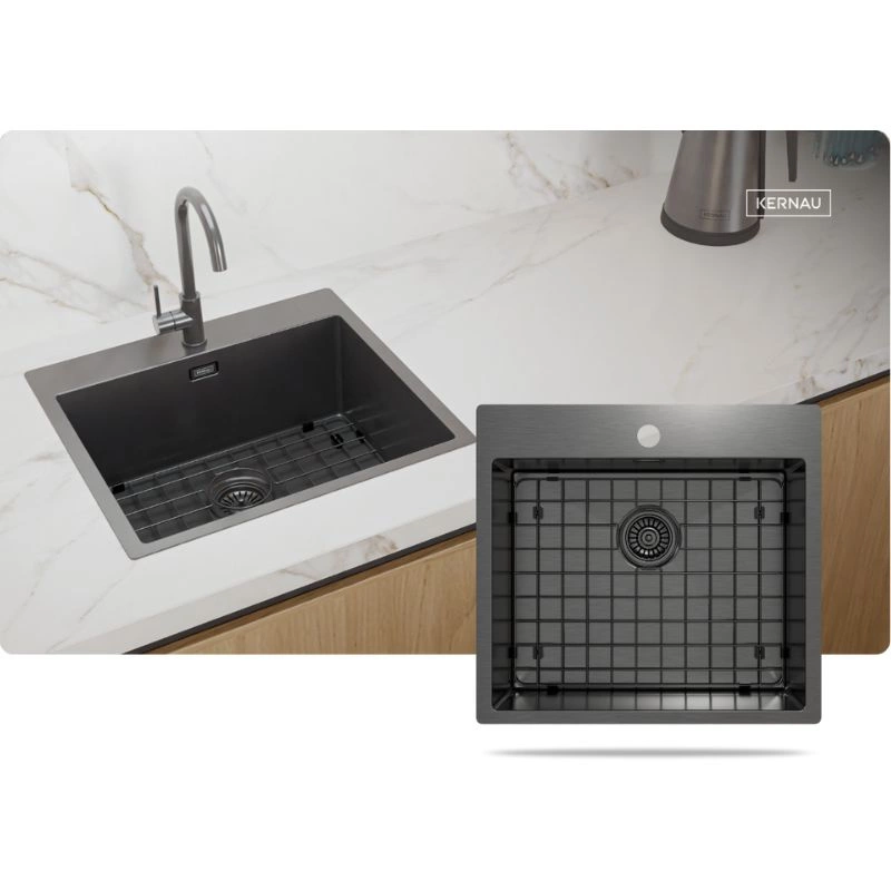 Szukasz zlewozmywaka, który nie tylko będzie funkcjonalny, ale i stanie się prawdziwą ozdobą Twojej kuchni? Stalowy zlewozmywak kuchenny KERNAU to idealny wybór dla Ciebie! Ten wyjątkowy model zachwyca swoim ponadczasowym designem, najwyższą jakością wykonania i luksusowym wykończeniem w kolorze antracytowym, które z pewnością nada charakteru każdej kuchni.