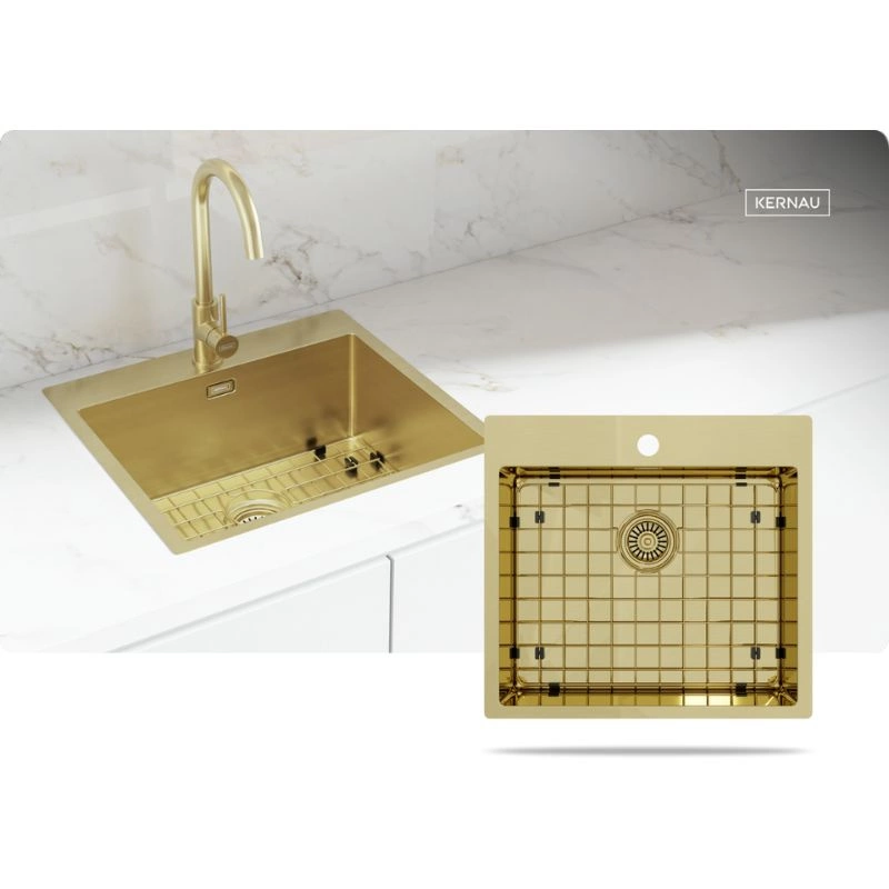 Szukasz zlewozmywaka, który nie tylko będzie funkcjonalny, ale i stanie się prawdziwą ozdobą Twojej kuchni? Stalowy zlewozmywak kuchenny KERNAU to idealny wybór dla Ciebie! Ten wyjątkowy model zachwyca swoim ponadczasowym designem, najwyższą jakością wykonania i luksusowym wykończeniem w kolorze złotym, które z pewnością nada charakteru każdej kuchni.