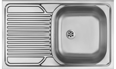 Solidny zlewozmywak stalowy stworzony został z wysokiej jakość stali nierdzewnej. Z natury ma ona właściwości antyseptyczne, co w połączeniu z opływowym designem, ułatwi sprzątanie i utrzymanie wysokiego poziomu higieny. Doskonale prezentuje się zarówno w pomieszczeniach urządzonych w stylu tradycyjnym, jak i nowoczesnym np. kuchniach minimalistycznych, industrialnych czy skandynawskich. Praktyczny, 1-komorowy zlewozmywak z ociekaczem to doskonałe rozwiązanie w małych kuchniach i kawalerkach z aneksem. Pełni jednocześnie funkcję suszarki, profilowana powierzchnia sprawnie odprowadza wodę spływającą z naczyń lub umytej żywności. Zlewozmywak zaprojektowany jest w taki sposób, aby ociekacz znajdował się z lewej strony. Produkt nakłada się na rant blatu. Dzięki temu zyskuje stabilność.