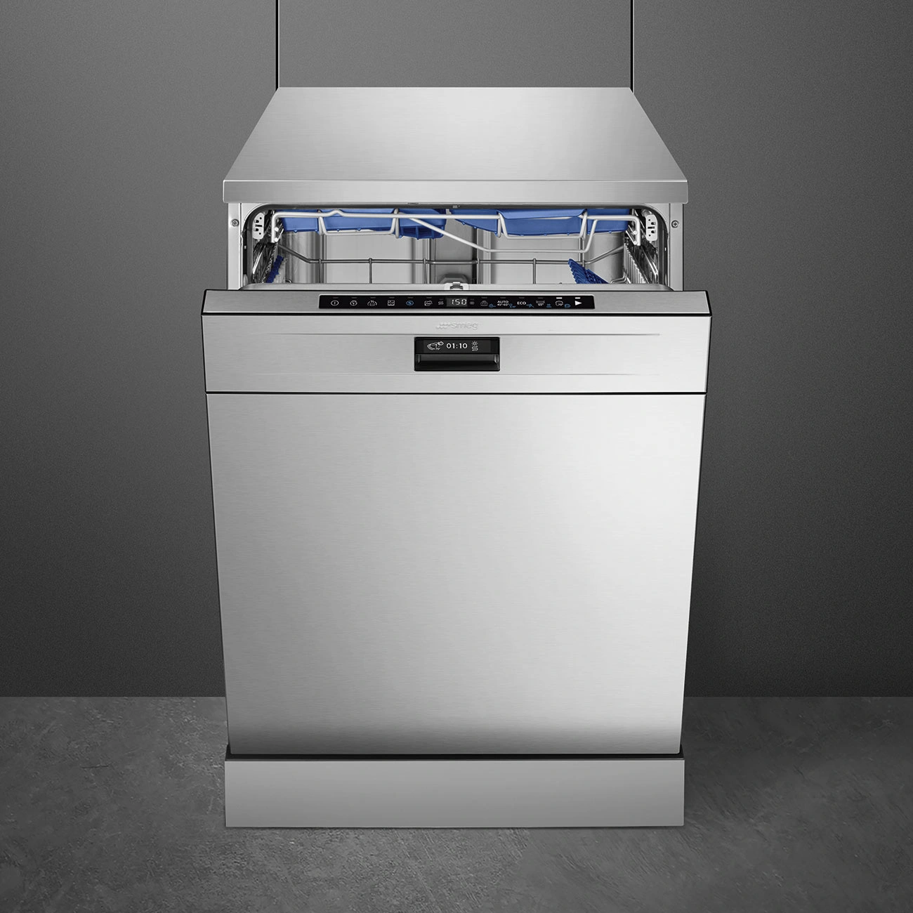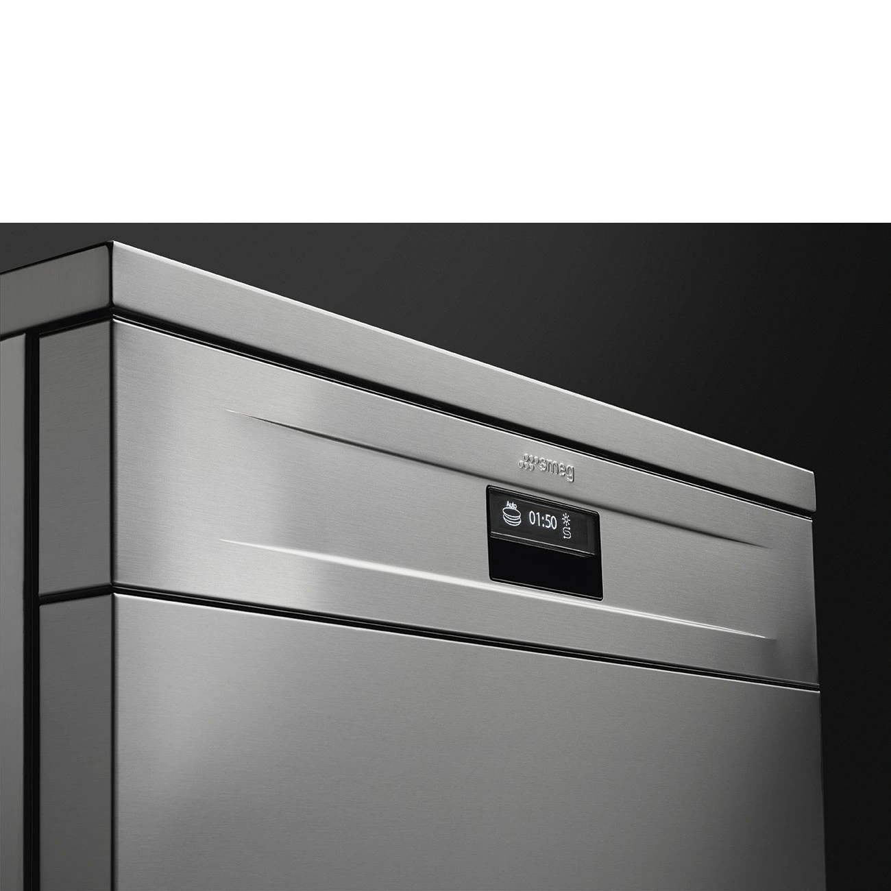 Estetyczna i solidna obudowa urządzenia to znak rozpoznawczy marki Smeg, łączący ponadczasowy styl z funkcjonalnością. Zmywarka doskonale wpisuje się zarówno w minimalistyczne, jak i klasyczne aranżacje wnętrz. Jej pojemność i praktyczne rozwiązania, takie jak regulowane kosze, umożliwiają optymalne zagospodarowanie przestrzeni.